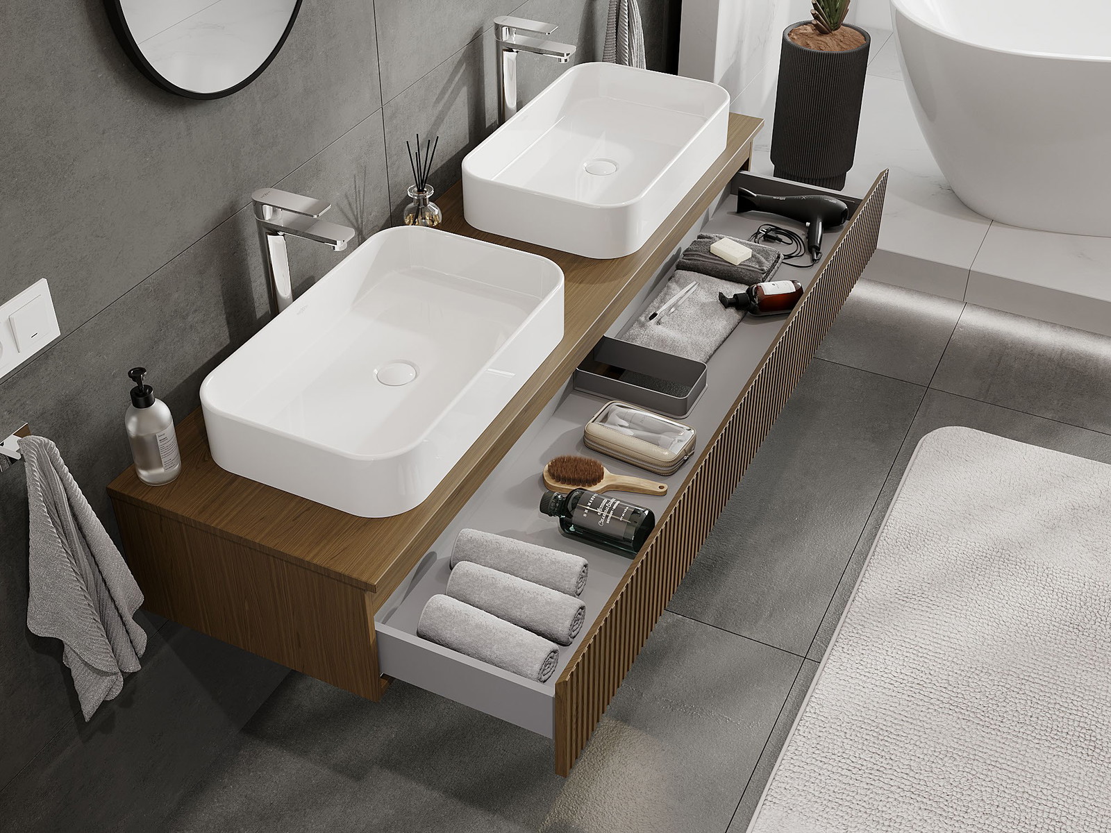 A szilárd anyagoknak, a precíz kivitelnek és a korszerű technológiai megoldásoknak köszönhetően a termék kényelmes használatot, nedvesség- és hőmérséklet-változásokkal szembeni ellenállást, valamint elegáns megjelenést biztosít, amely illeszkedik a különböző fürdőszobai stílusokhoz.