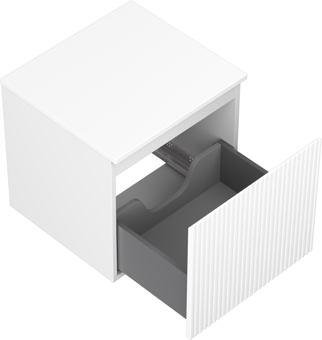 A fiókban lévő kivágás úgy van kialakítva, hogy befogadja a mosdó telepítéseknél szükséges szifont. Ennek köszönhetően a bútor teljesen funkcionálisan felszerelhető anélkül, hogy a fiók terének egy részét fel kellene áldozni a telepítés miatt.