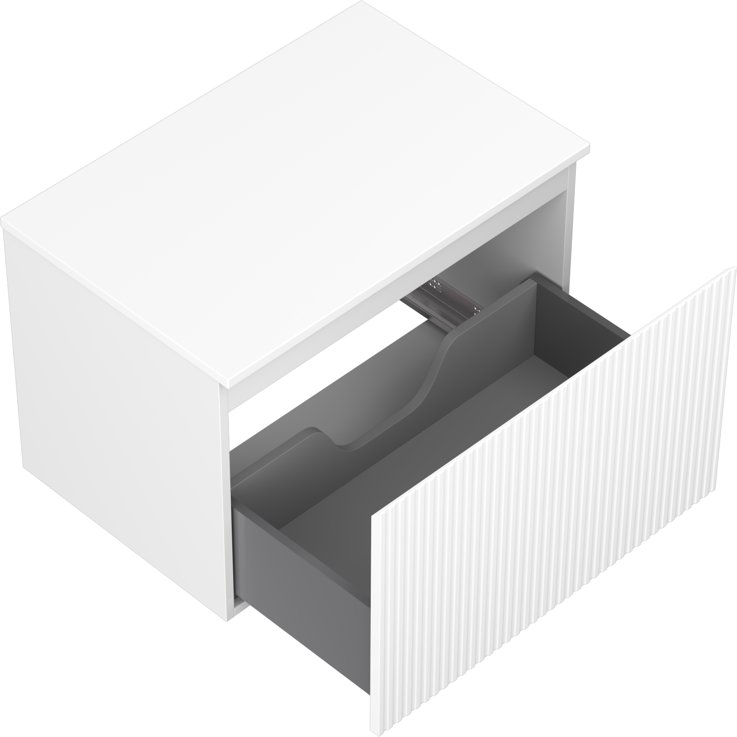 A fiókban lévő kivágás úgy van kialakítva, hogy befogadja a mosdó telepítéseknél szükséges szifont. Ennek köszönhetően a bútor teljesen funkcionálisan felszerelhető anélkül, hogy a fiók terének egy részét fel kellene áldozni a telepítés miatt.
