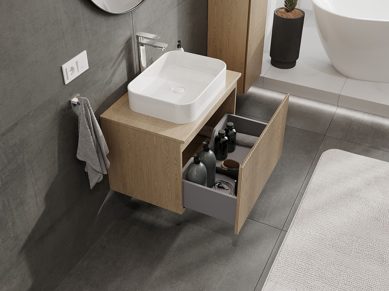 Mexen Rivel fürdőszobai szekrény mosdókagyló alá, 70 cm-es, lappal, 1 fiókkal, bordázott, tölgy - 91A20-07047-1-BFC81