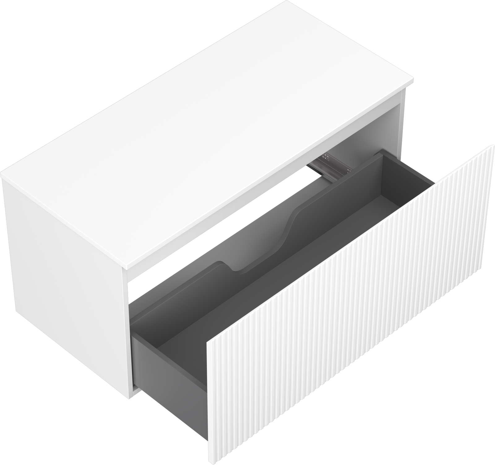 A fiókban lévő kivágás úgy van kialakítva, hogy befogadja a mosdó telepítéseknél szükséges szifont. Ennek köszönhetően a bútor teljesen funkcionálisan felszerelhető anélkül, hogy a fiók terének egy részét fel kellene áldozni a telepítés miatt.