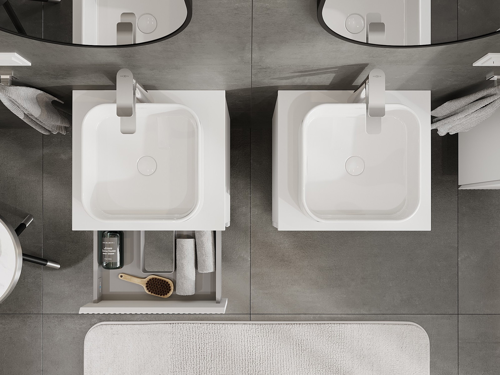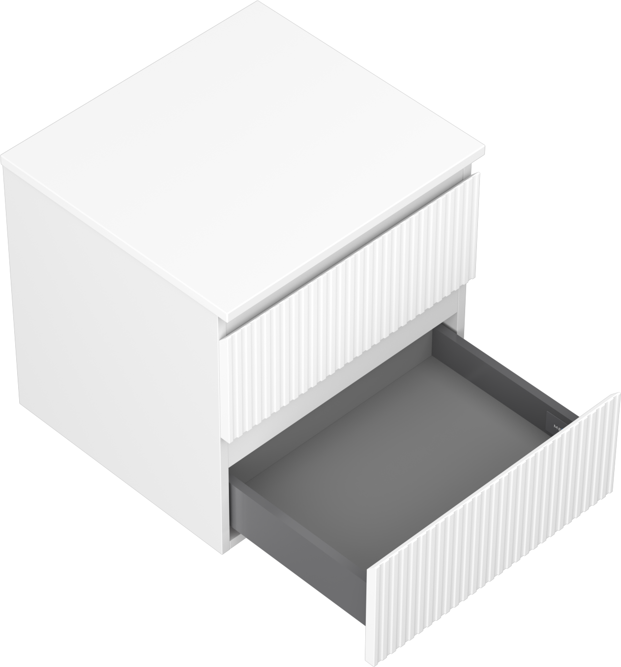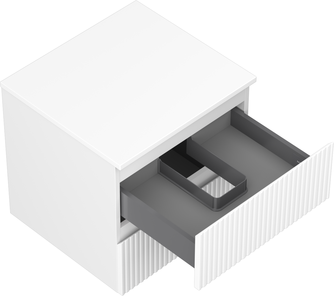 A fiókban lévő kivágás úgy van kialakítva, hogy befogadja a mosdó telepítéseknél szükséges szifont. Ennek köszönhetően a bútor teljesen funkcionálisan felszerelhető anélkül, hogy a fiók terének egy részét fel kellene áldozni a telepítés miatt.