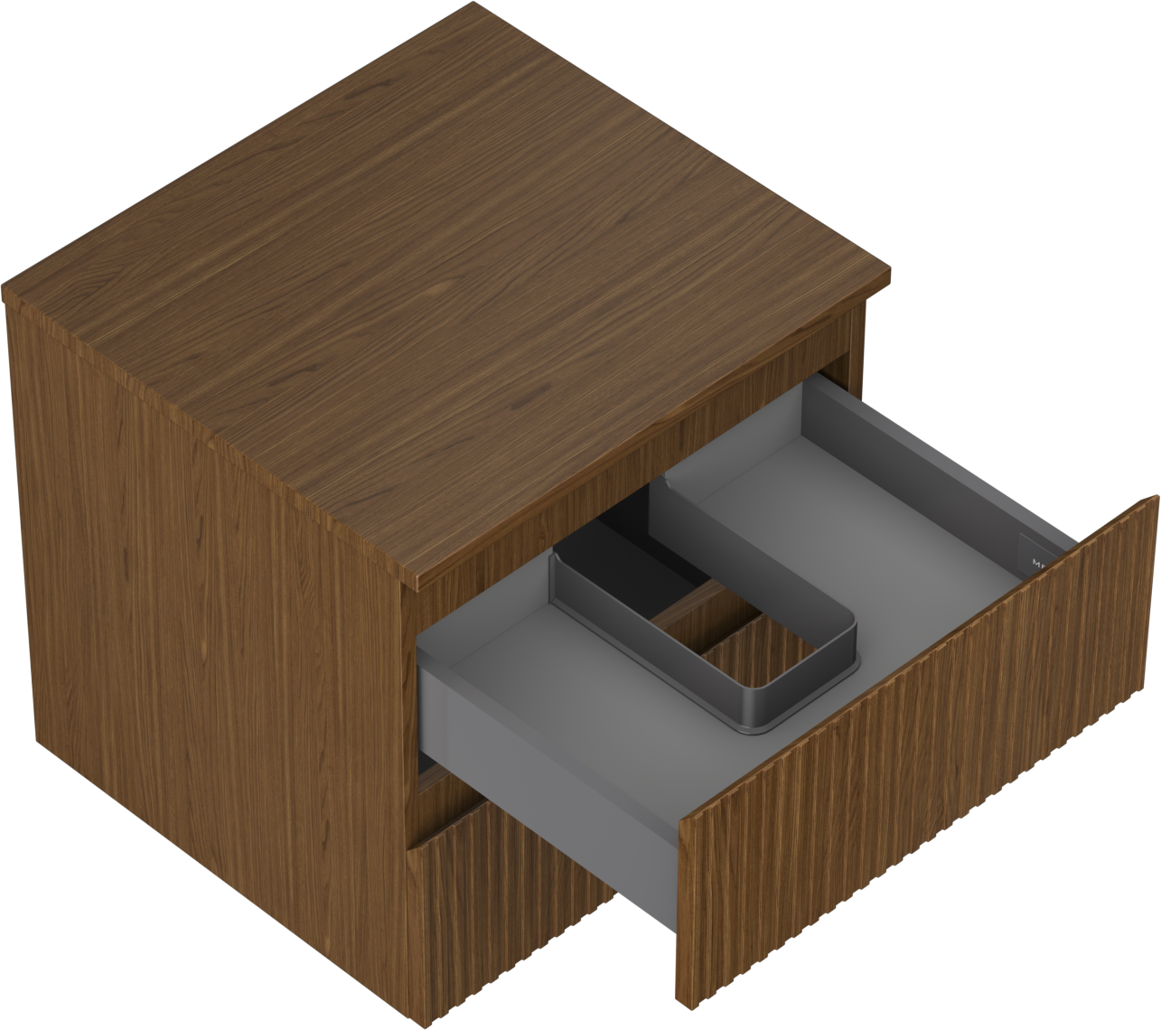 A fiókban lévő kivágás úgy van kialakítva, hogy befogadja a mosdó telepítéseknél szükséges szifont. Ennek köszönhetően a bútor teljesen funkcionálisan felszerelhető anélkül, hogy a fiók terének egy részét fel kellene áldozni a telepítés miatt.