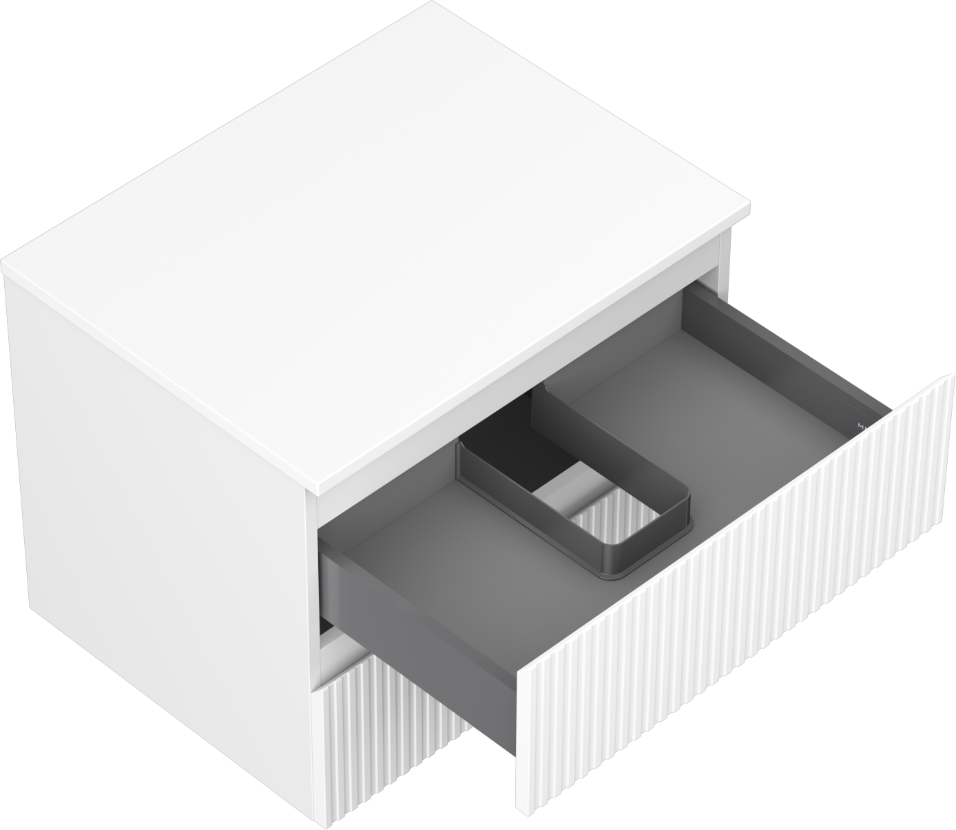 A fiókban lévő kivágás úgy van kialakítva, hogy befogadja a mosdó telepítéseknél szükséges szifont. Ennek köszönhetően a bútor teljesen funkcionálisan felszerelhető anélkül, hogy a fiók terének egy részét fel kellene áldozni a telepítés miatt.