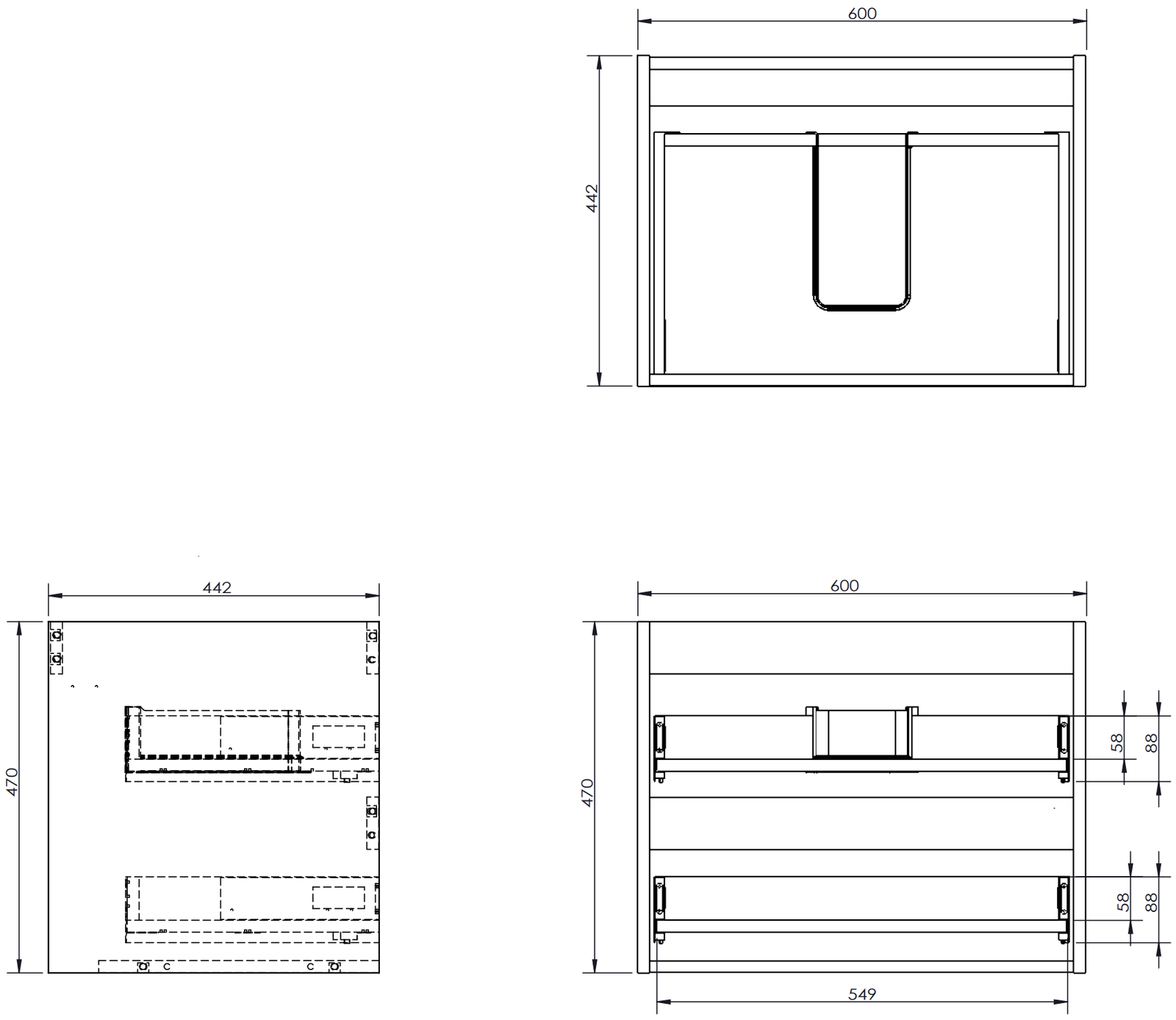 A fiókban lévő kivágás úgy van kialakítva, hogy befogadja a mosdó telepítéseknél szükséges szifont. Ennek köszönhetően a bútor teljesen funkcionálisan felszerelhető anélkül, hogy a fiók terének egy részét fel kellene áldozni a telepítés miatt.