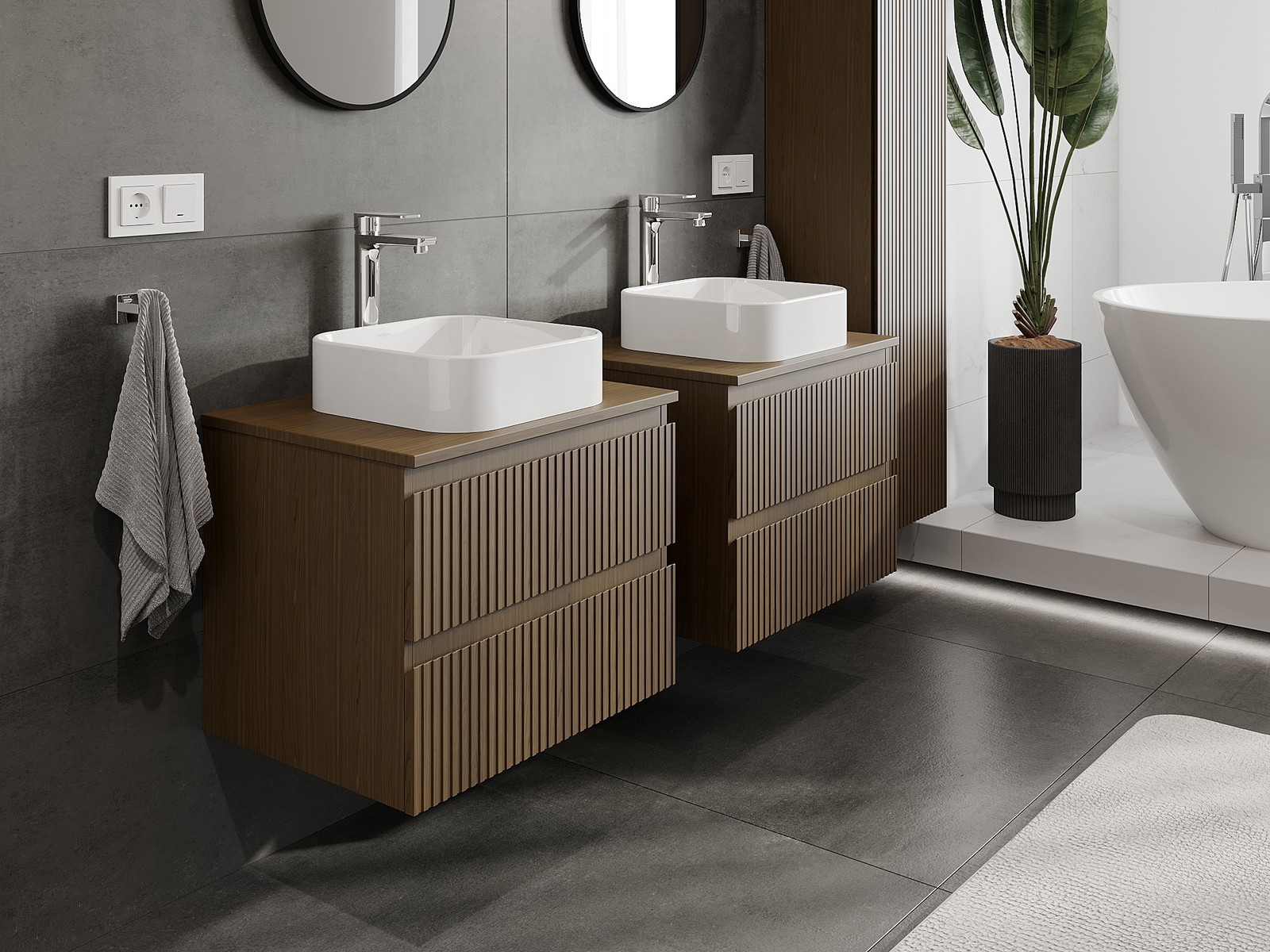 A moduláris fürdőszobabútorainkat különböző színkonfigurációkban lehet kombinálni, lehetővé téve a teljes személyre szabást. Kiválasztható mind az egyes elemek megjelenése, mind pedig funkciói, ami lehetővé teszi a bútorok személyes stílus- és használati preferenciákhoz való igazítását.