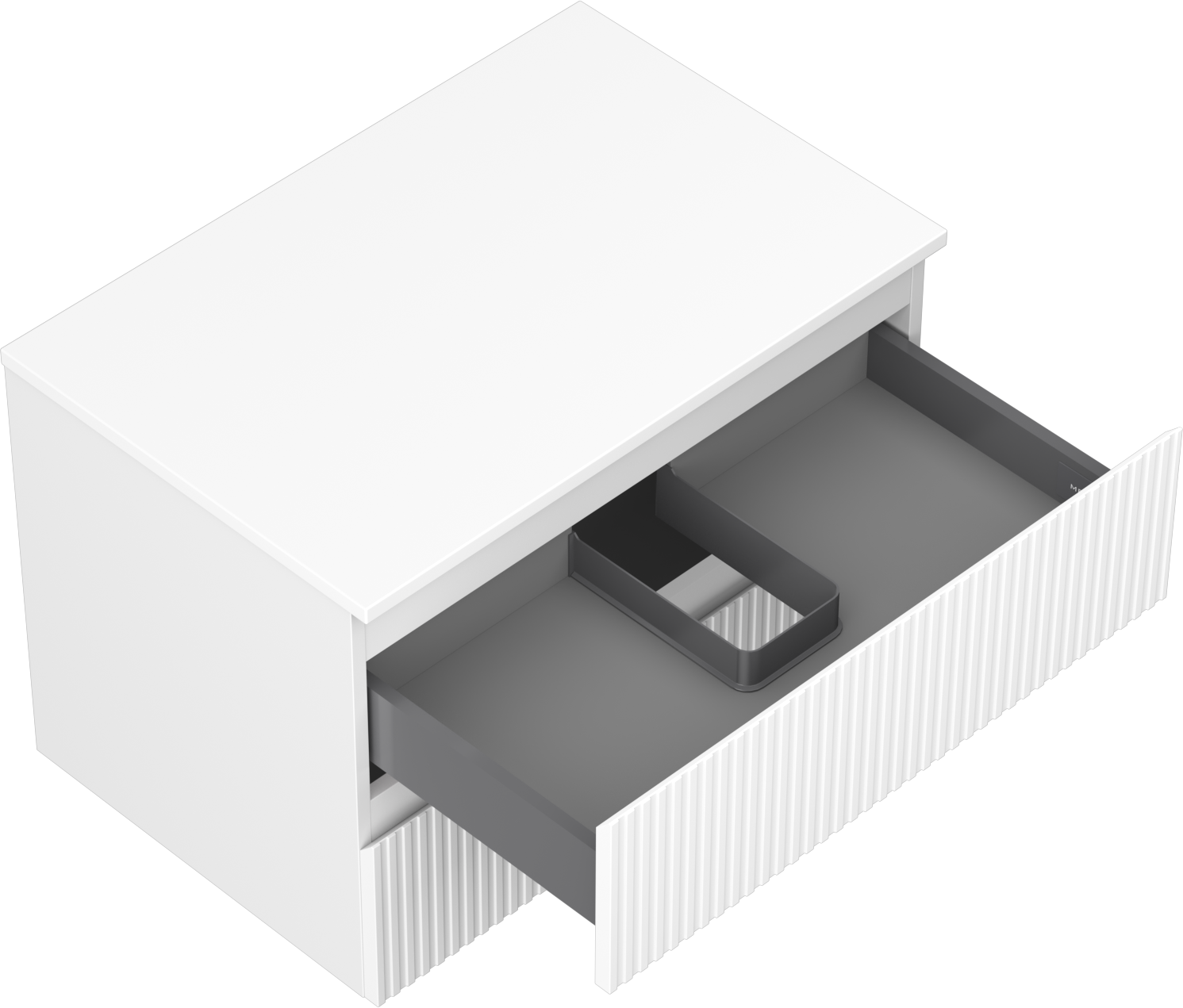 A fiókban lévő kivágás úgy van kialakítva, hogy befogadja a mosdó telepítéseknél szükséges szifont. Ennek köszönhetően a bútor teljesen funkcionálisan felszerelhető anélkül, hogy a fiók terének egy részét fel kellene áldozni a telepítés miatt.