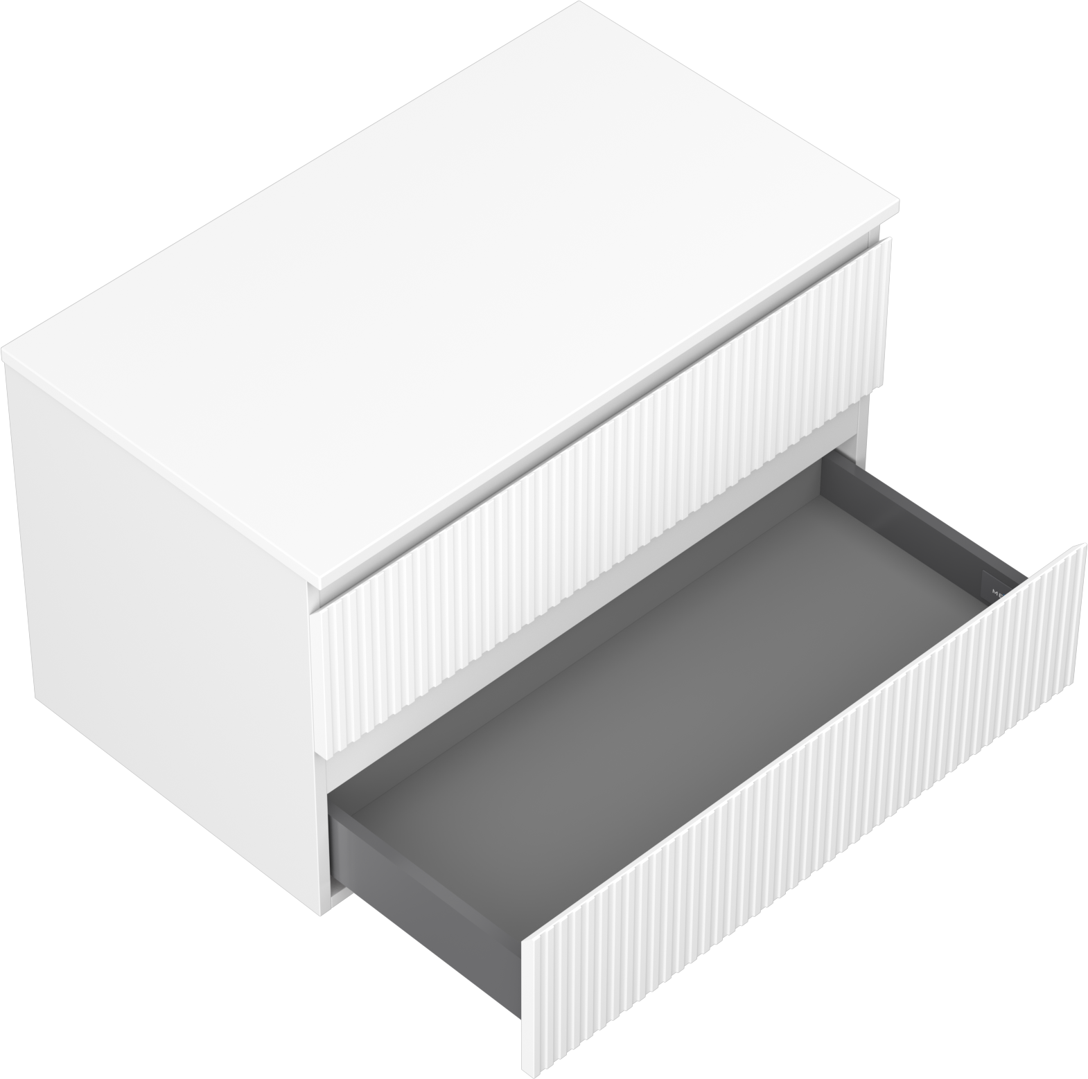 A fiókban lévő kivágás úgy van kialakítva, hogy befogadja a mosdó telepítéseknél szükséges szifont. Ennek köszönhetően a bútor teljesen funkcionálisan felszerelhető anélkül, hogy a fiók terének egy részét fel kellene áldozni a telepítés miatt.