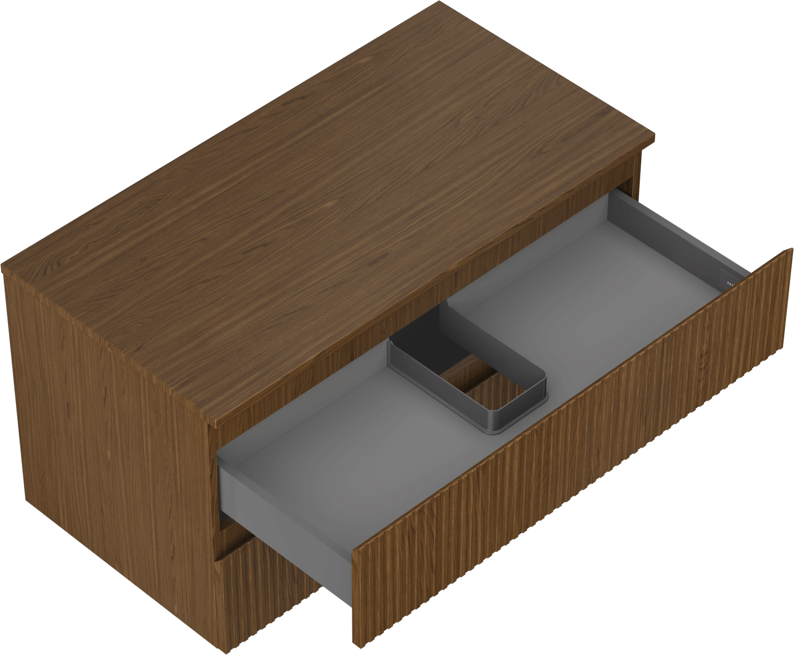 A fiókban lévő kivágás úgy van kialakítva, hogy befogadja a mosdó telepítéseknél szükséges szifont. Ennek köszönhetően a bútor teljesen funkcionálisan felszerelhető anélkül, hogy a fiók terének egy részét fel kellene áldozni a telepítés miatt.
