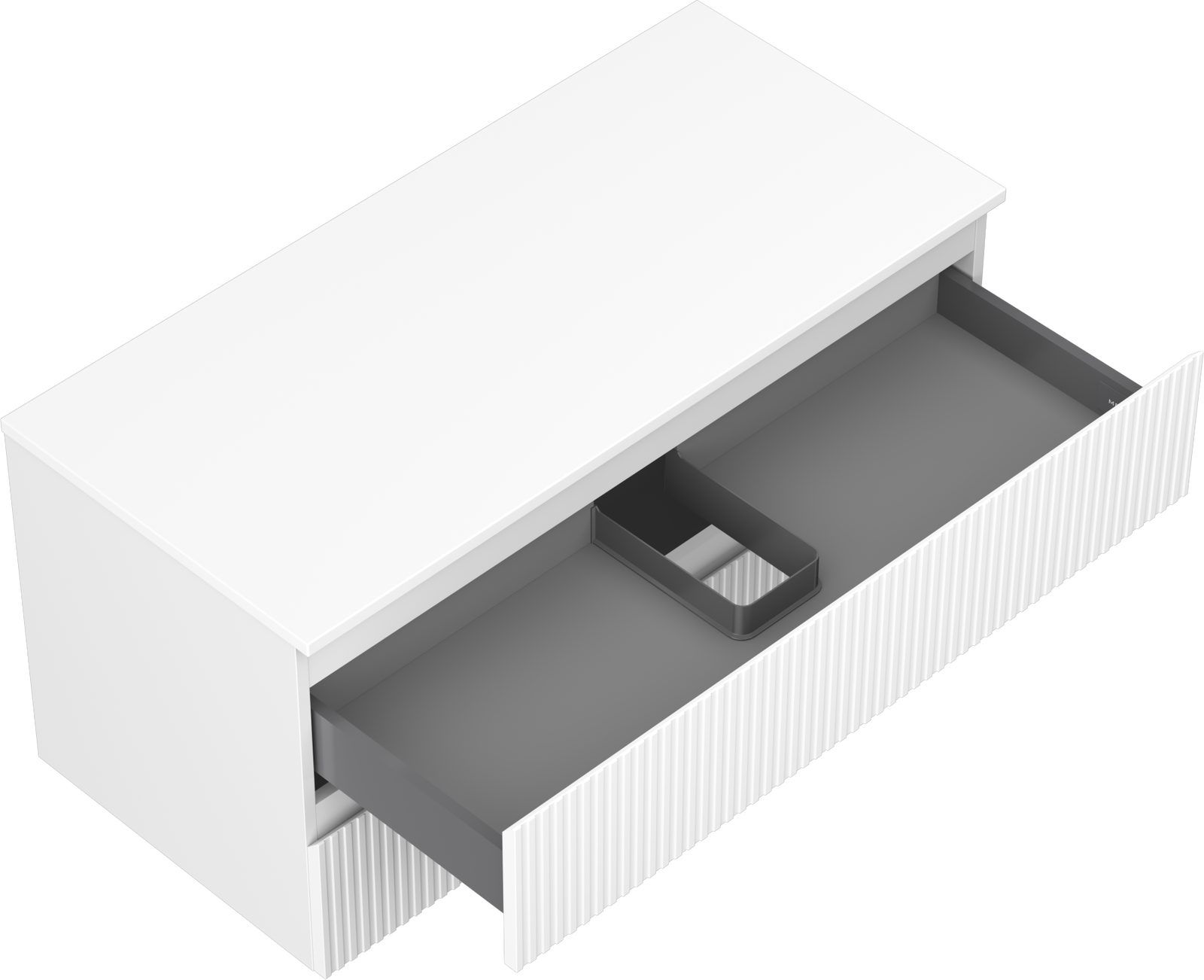 A fiókban lévő kivágás úgy van kialakítva, hogy befogadja a mosdó telepítéseknél szükséges szifont. Ennek köszönhetően a bútor teljesen funkcionálisan felszerelhető anélkül, hogy a fiók terének egy részét fel kellene áldozni a telepítés miatt.