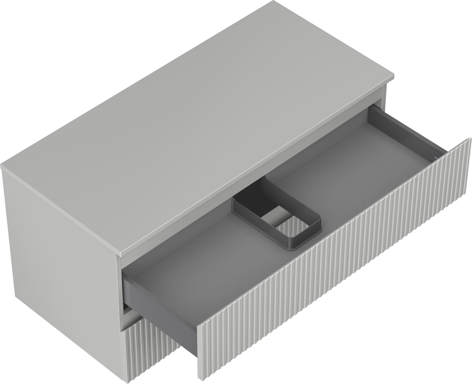 A fiókban lévő kivágás úgy van kialakítva, hogy befogadja a mosdó telepítéseknél szükséges szifont. Ennek köszönhetően a bútor teljesen funkcionálisan felszerelhető anélkül, hogy a fiók terének egy részét fel kellene áldozni a telepítés miatt.