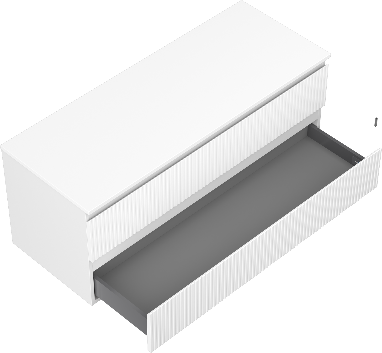 Mexen Rivel 120 cm-es mosdó alatti fürdőszobaszekrény munkalappal, 2 fiókos, barázdált, matt fehér - 91A20-12047-2-BFFC01