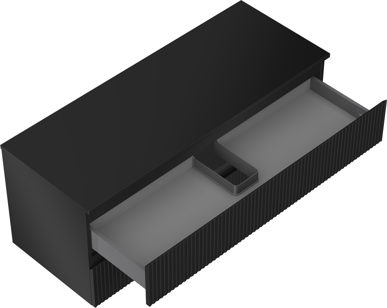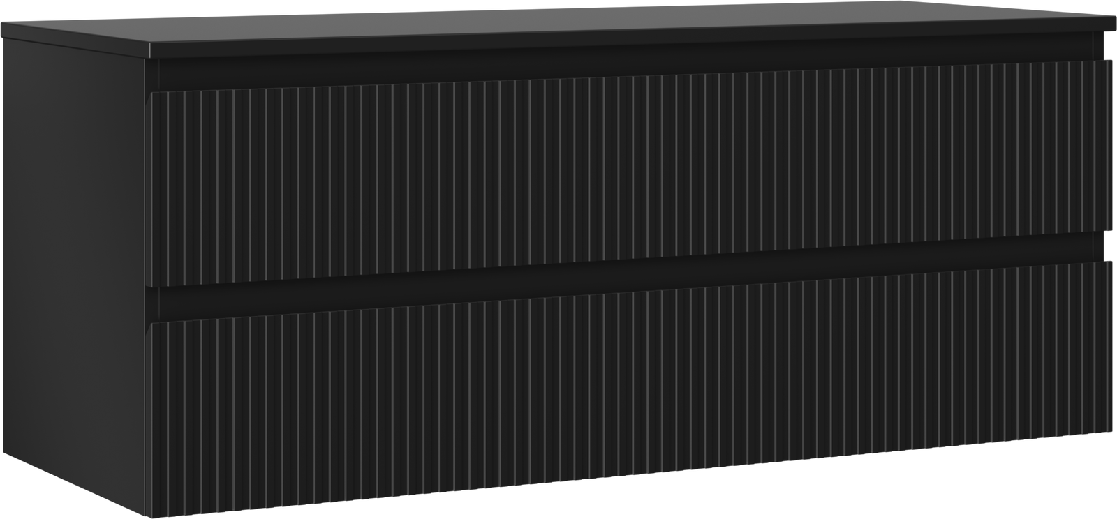 Mexen Rivel fürdőszobai alsószekrény 120 cm-es, munkalapos, 2 fiókos, bordázott, fekete matt - 91A20-12047-2-BFFC71