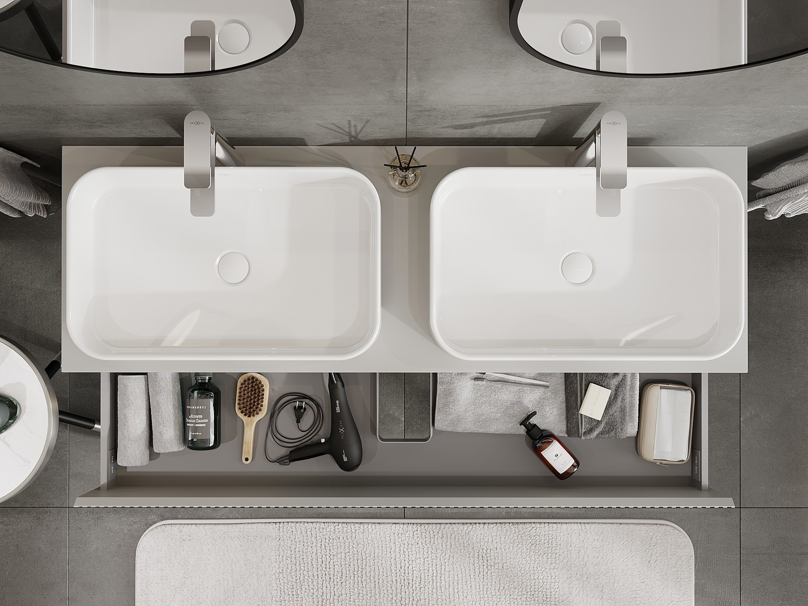 A fiókban lévő kivágás úgy van kialakítva, hogy befogadja a mosdó telepítéseknél szükséges szifont. Ennek köszönhetően a bútor teljesen funkcionálisan felszerelhető anélkül, hogy a fiók terének egy részét fel kellene áldozni a telepítés miatt.