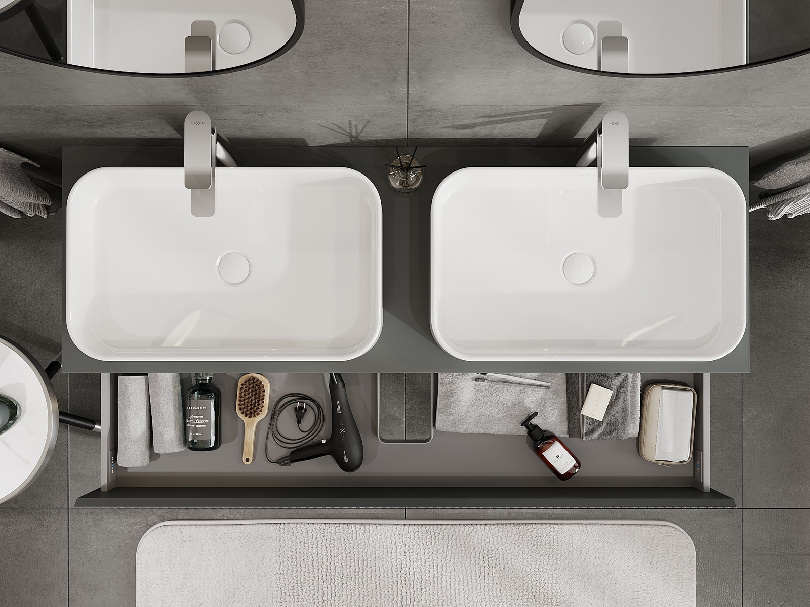 A fiókban lévő kivágás úgy van kialakítva, hogy befogadja a mosdó telepítéseknél szükséges szifont. Ennek köszönhetően a bútor teljesen funkcionálisan felszerelhető anélkül, hogy a fiók terének egy részét fel kellene áldozni a telepítés miatt.