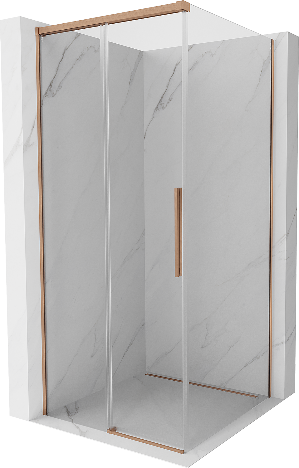 Mexen Rox 110 x 110 cm-es tolóajtós zuhanykabin, átlátszó, csiszolt réz - 8C2-110-110-65-00