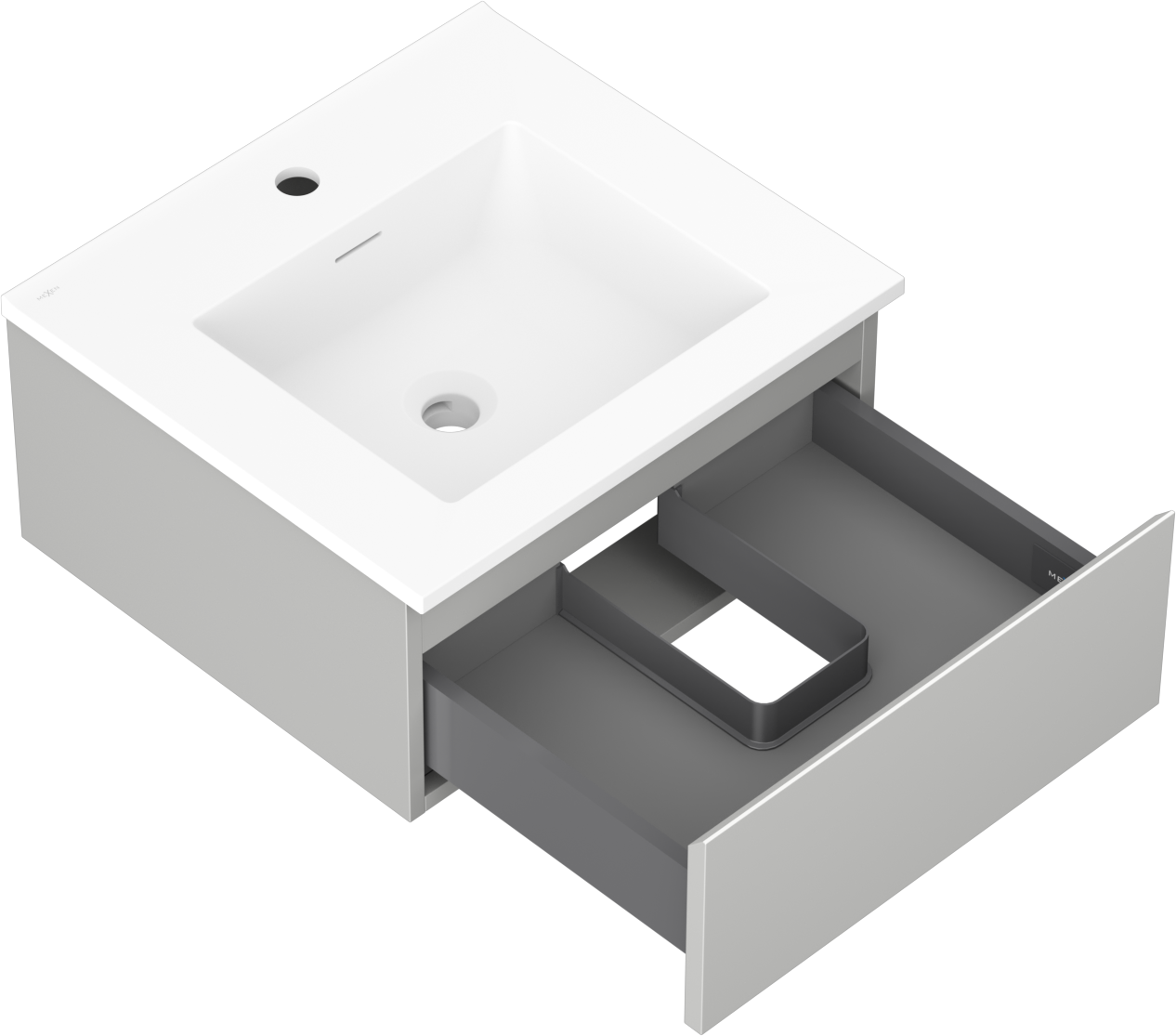 Mexen Orio 50 cm-es fürdőszobai szekrény Otis mosdóval, 1 fiók, szürke matt/fehér matt - 91A10-05023-1-BF62-W18M01