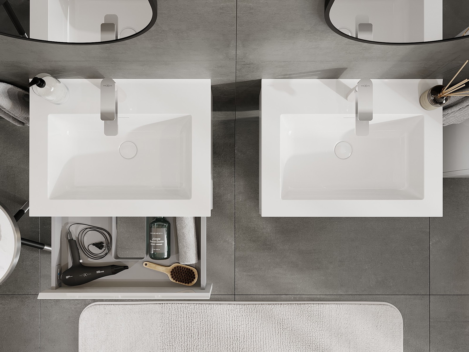 A fiókban lévő kivágás úgy van kialakítva, hogy befogadja a mosdó telepítéseknél szükséges szifont. Ennek köszönhetően a bútor teljesen funkcionálisan felszerelhető anélkül, hogy a fiók terének egy részét fel kellene áldozni a telepítés miatt.