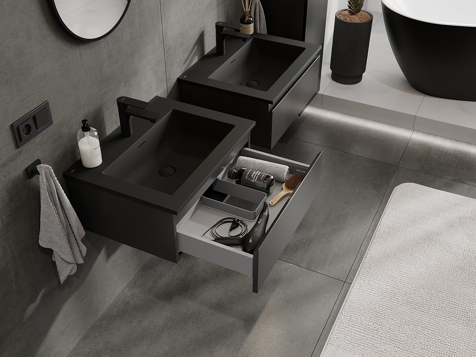 Mexen Orio 60 cm-es fürdőszobai szekrény Otis mosdóval, 1 fiók, fekete matt - 91A10-06023-1-BF71-W18M71