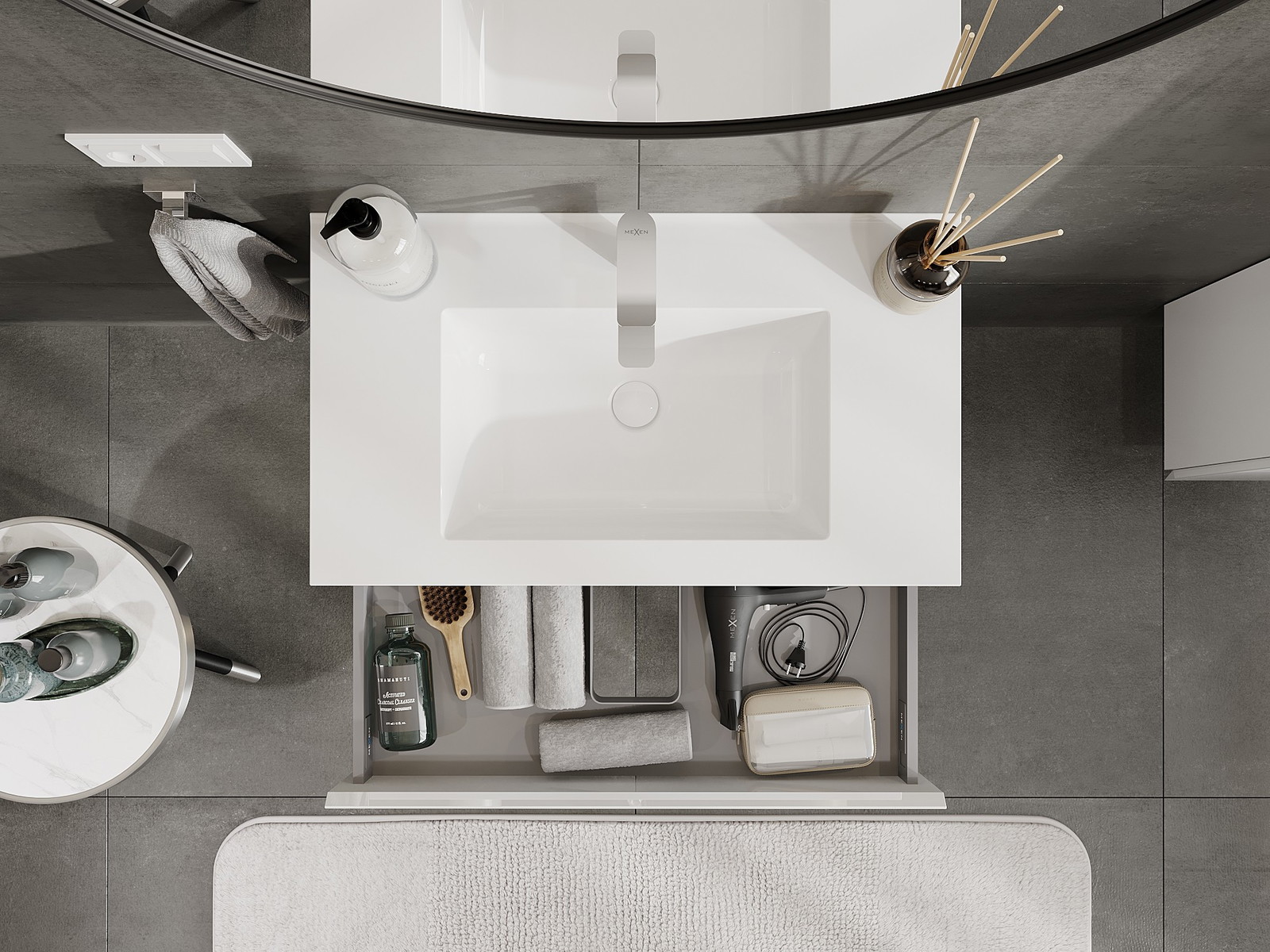Mexen Orio fürdőszobai szekrény 80 cm mosdóval Otis, 1 fiók, fényes fehér - 91A10-08023-1-BF00-W18M00
