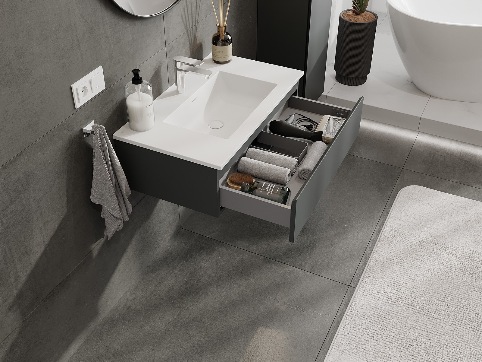 Mexen Orio fürdőszobai szekrény 80 cm mosdóval Otis, 1 fiók, grafit matt/fehér matt - 91A10-08023-1-BF66-W18M01