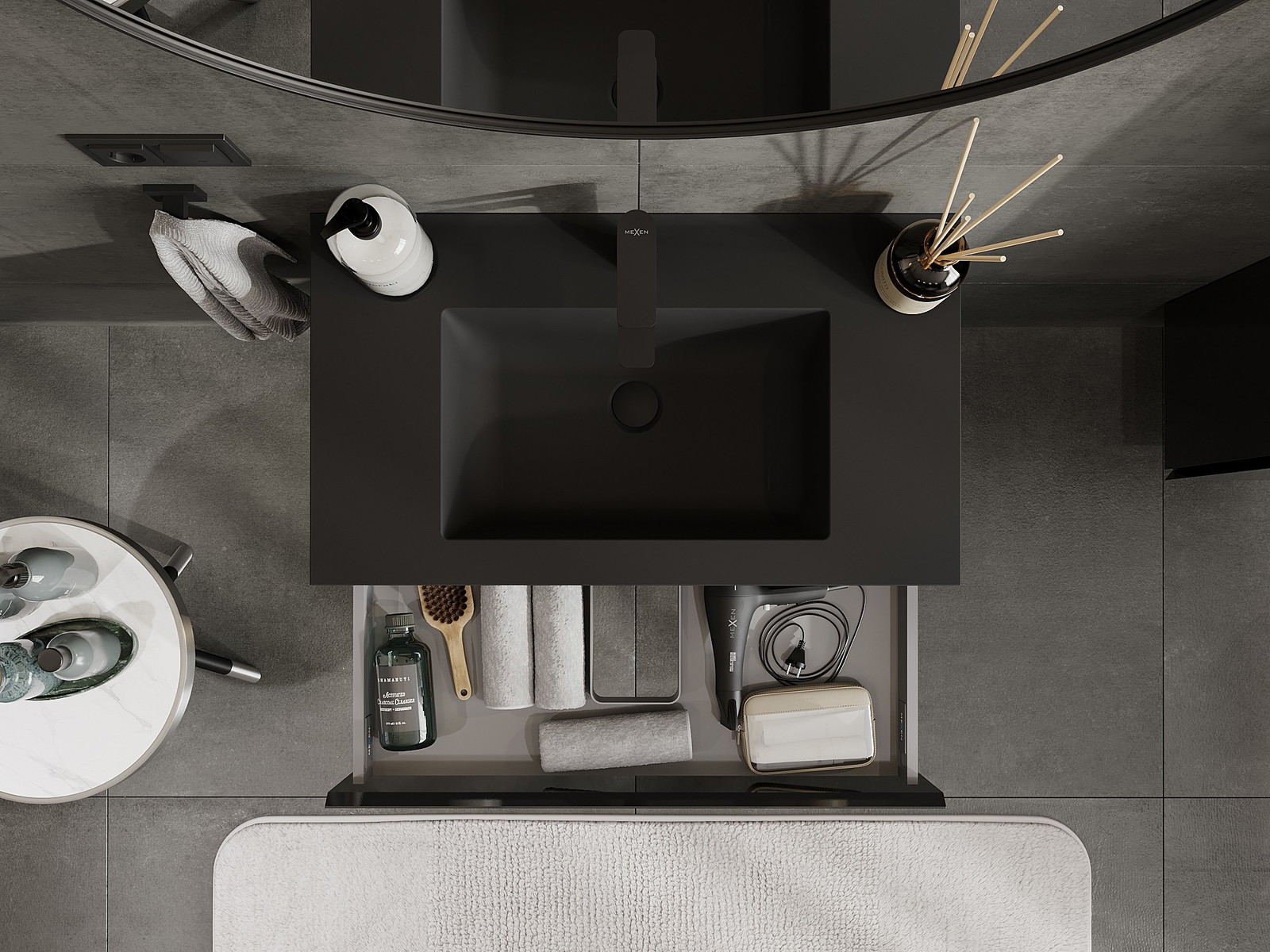 Mexen Orio fürdőszobai szekrény 80 cm mosdóval Otis, 1 fiók, fekete fényes/fekete matt - 91A10-08023-1-BF70-W18M71