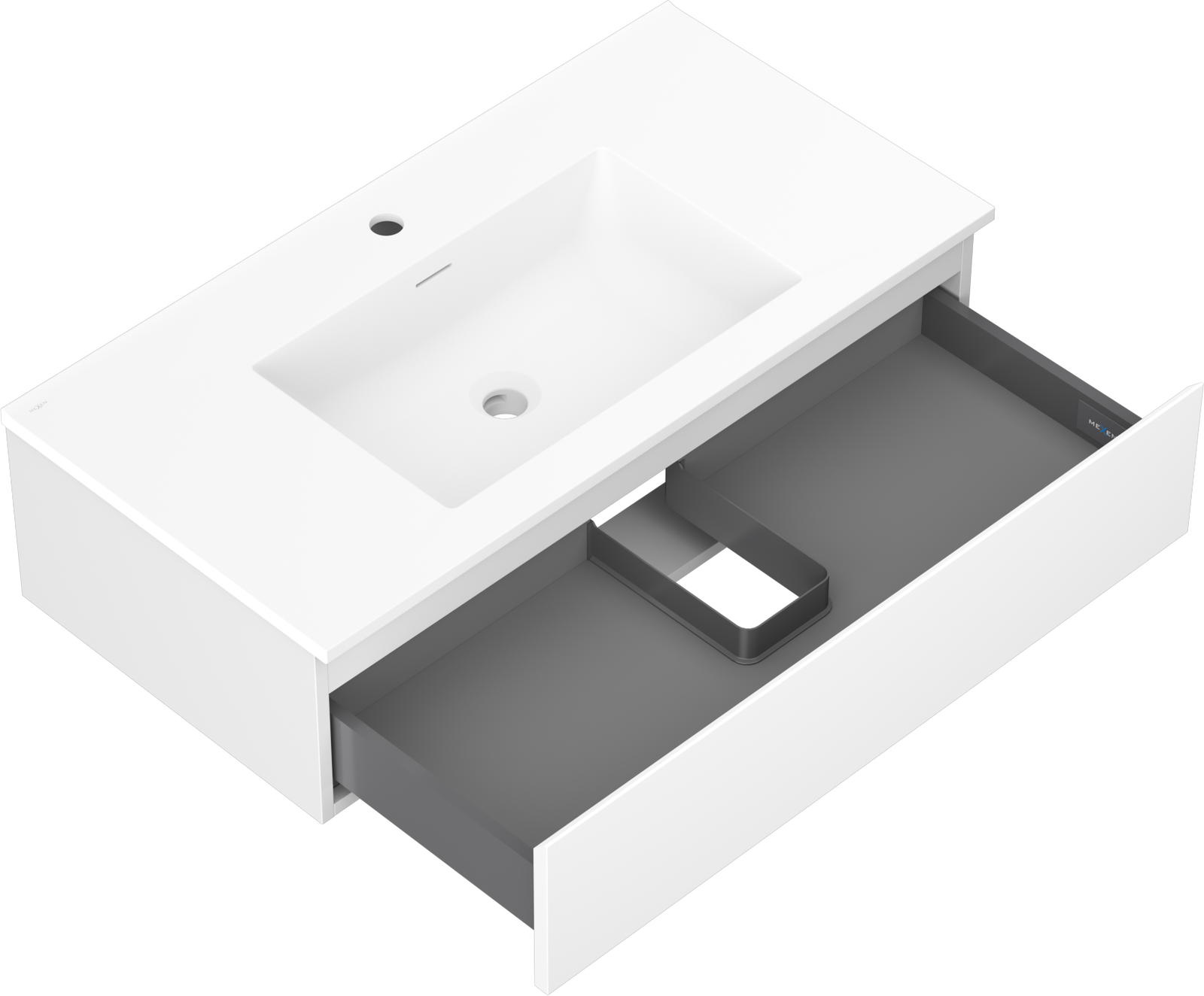 A fiókban lévő kivágás úgy van kialakítva, hogy befogadja a mosdó telepítéseknél szükséges szifont. Ennek köszönhetően a bútor teljesen funkcionálisan felszerelhető anélkül, hogy a fiók terének egy részét fel kellene áldozni a telepítés miatt.