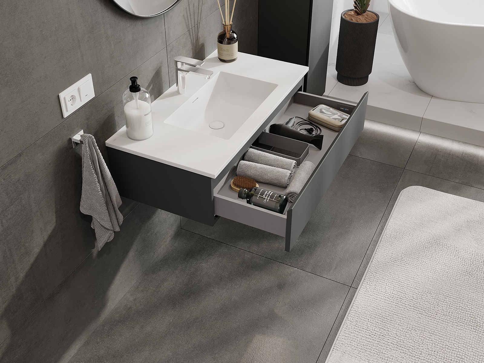 Mexen Orio fürdőszobai szekrény 90 cm mosdóval Otis, 1 fiók, grafit matt/fehér matt - 91A10-09023-1-BF66-W18M01