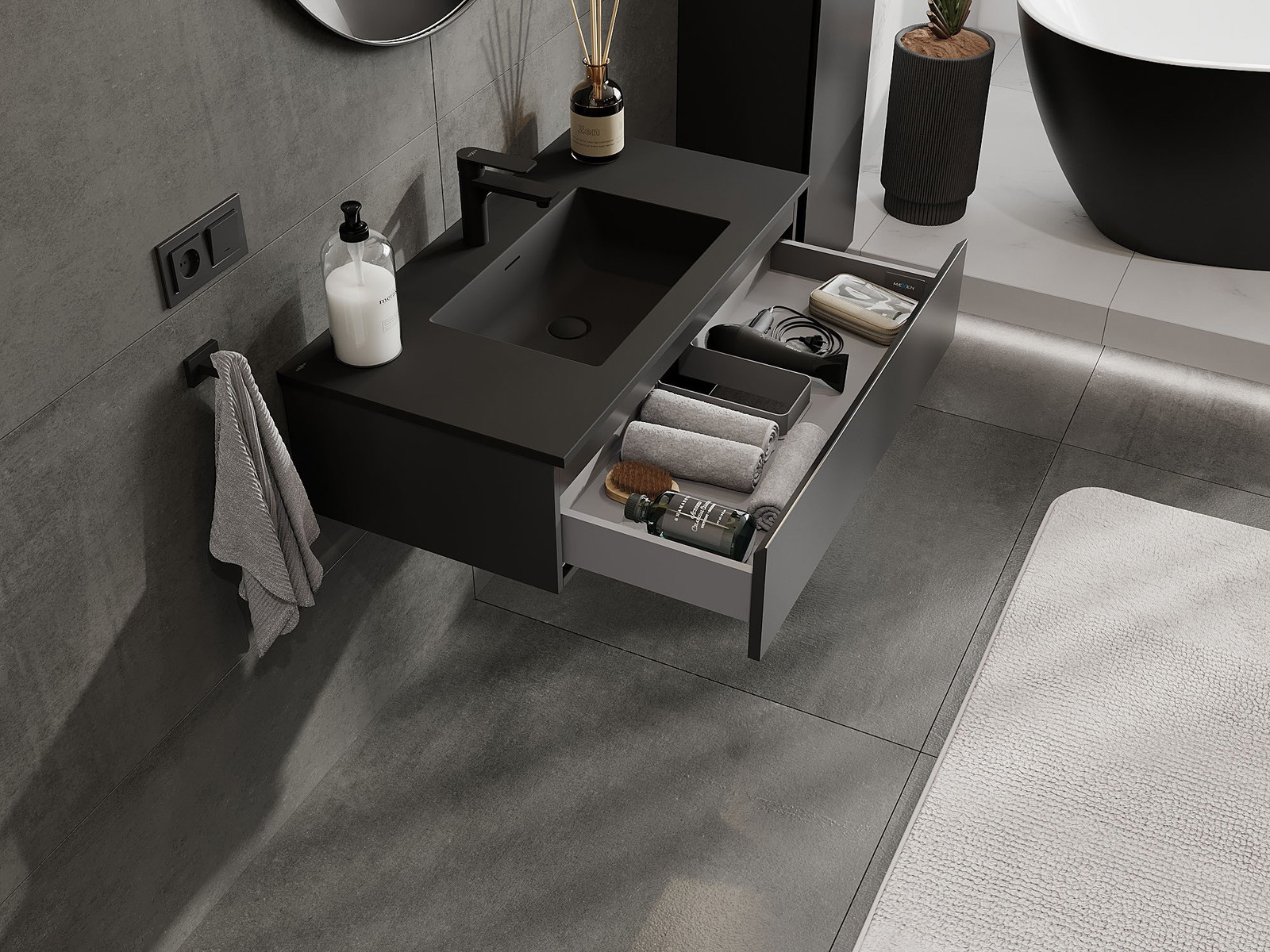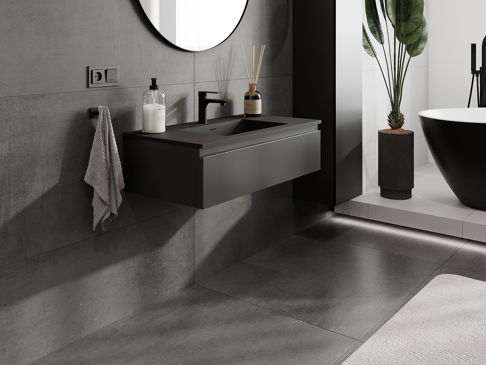 A mosdó színe: Fekete matt
