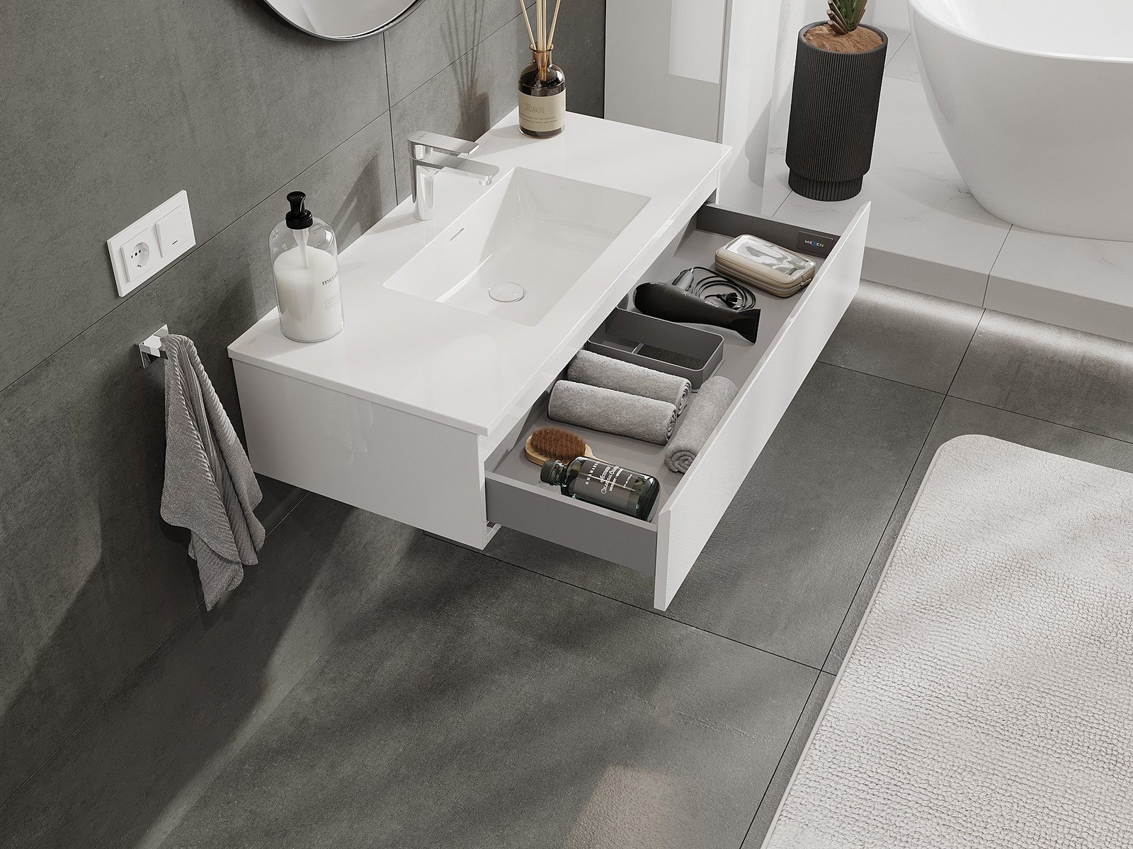 A szilárd anyagoknak, a precíz kivitelnek és a korszerű technológiai megoldásoknak köszönhetően a termék kényelmes használatot, nedvesség- és hőmérséklet-változásokkal szembeni ellenállást, valamint elegáns megjelenést biztosít, amely illeszkedik a különböző fürdőszobai stílusokhoz.