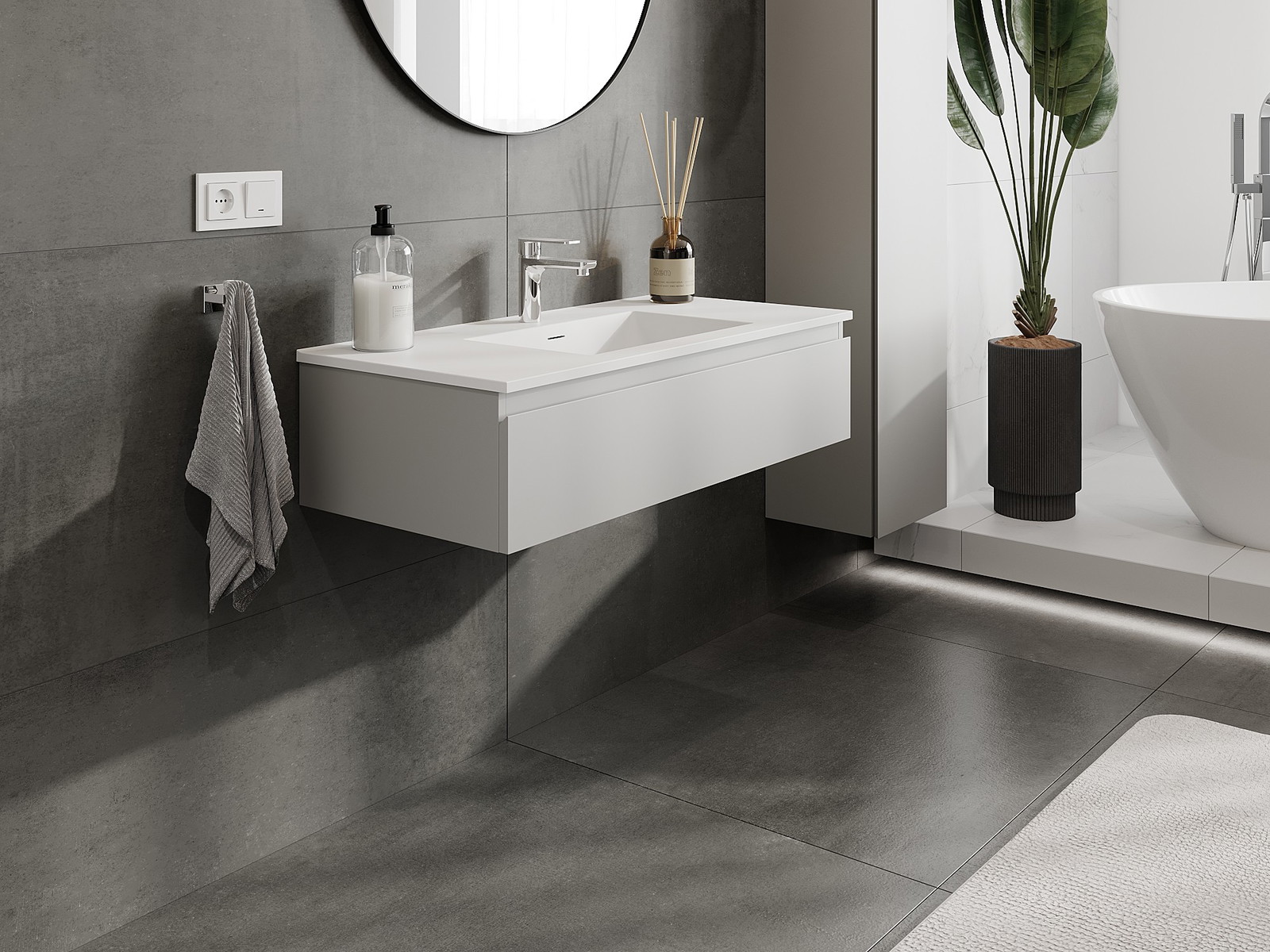 Mexen Orio 100 cm-es fürdőszobaszekrény Otis mosdóval, 1 fiók, szürke matt/fehér matt - 91A10-10023-1-BF62-W18M01