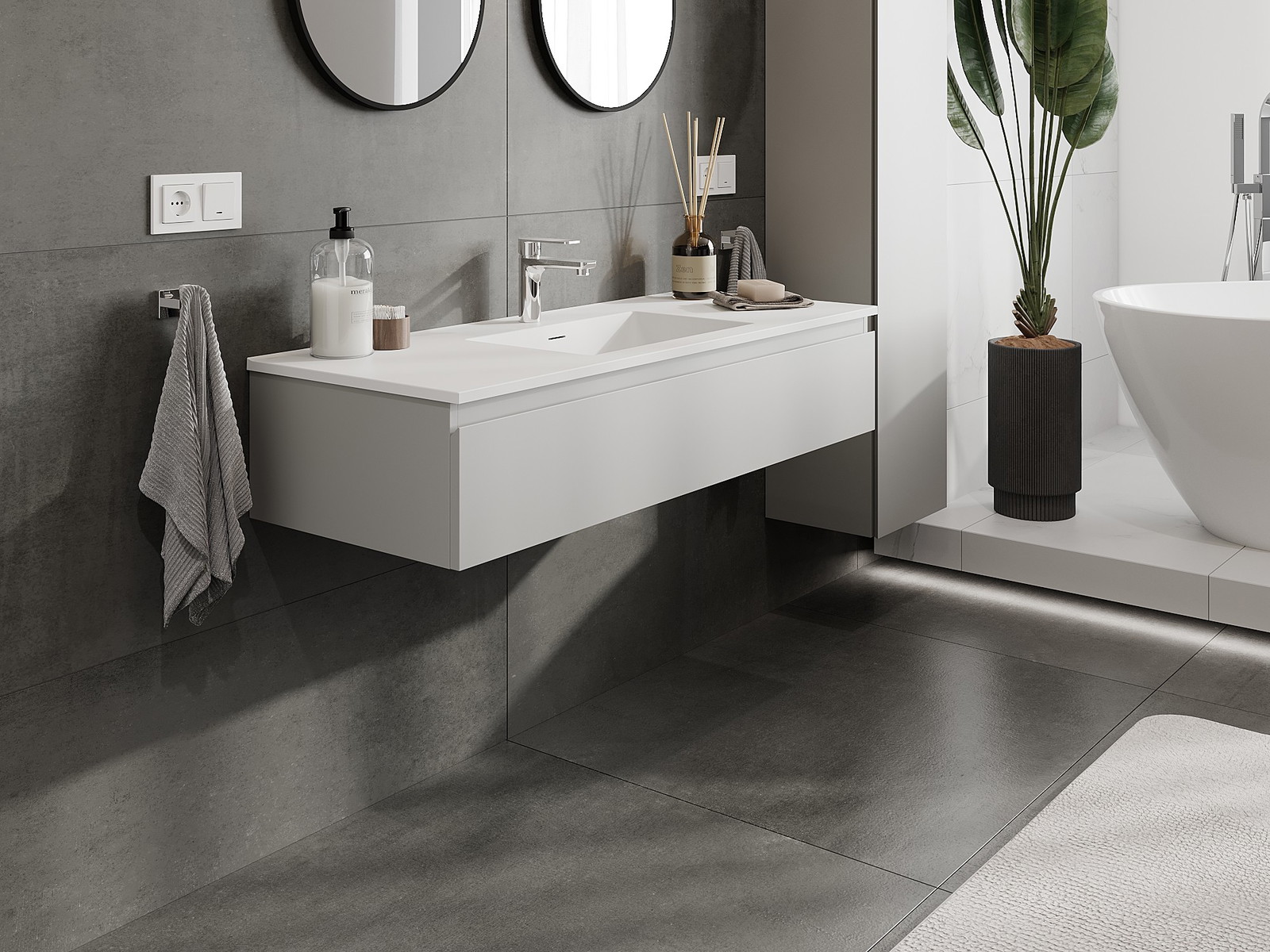 Mexen Orio 120 cm-es fürdőszobai szekrény Otis mosdóval, 1 fiók, szürke matt/fehér matt - 91A10-12023-1-BF62-W18M01