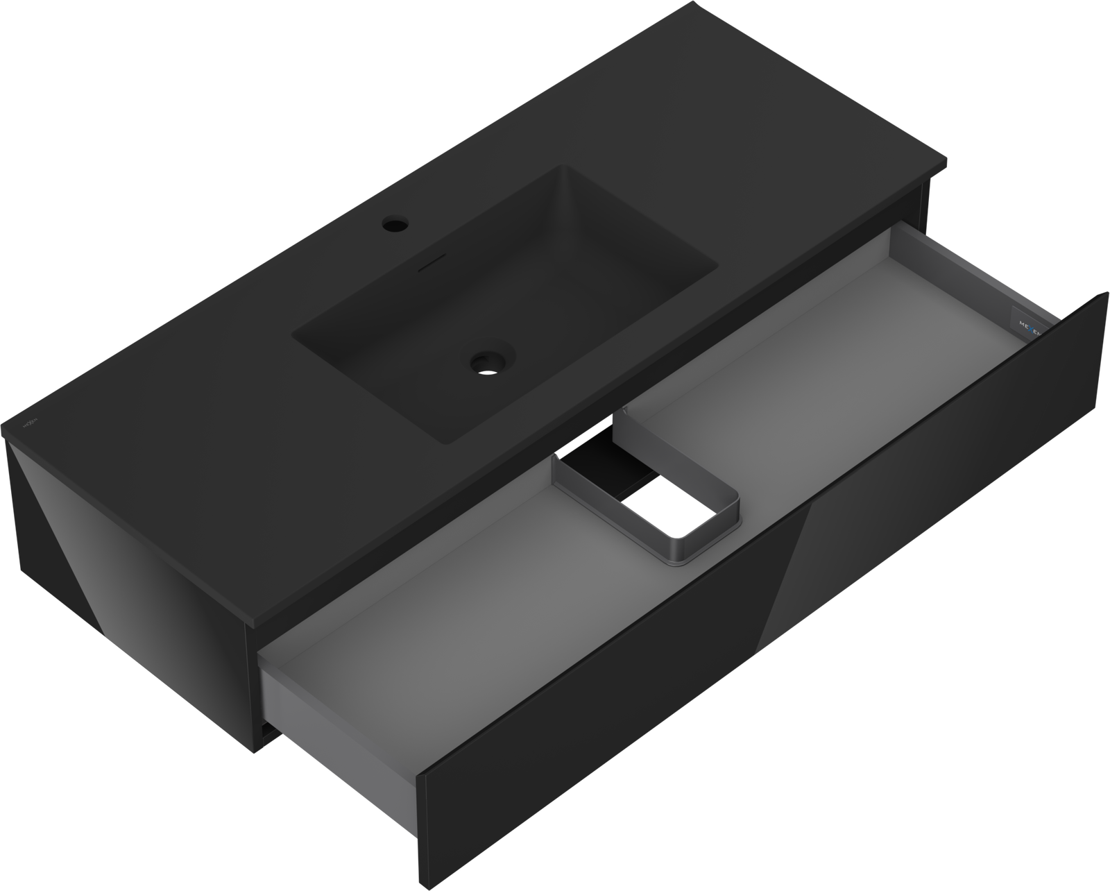 Mexen Orio fürdőszobaszekrény 120 cm Otis mosdóval, 1 fiók, fekete fényes/fekete matt - 91A10-12023-1-BF70-W18M71
