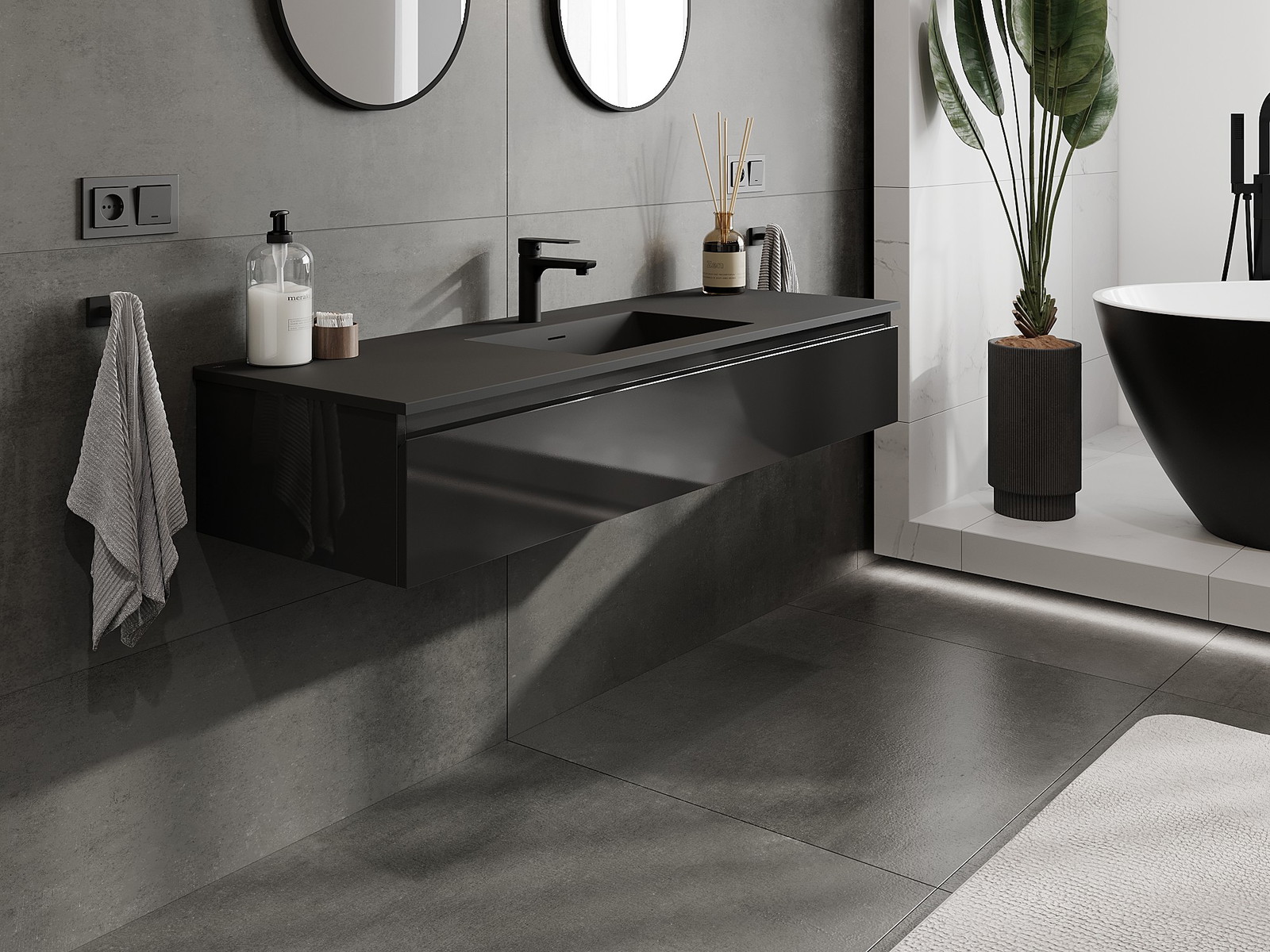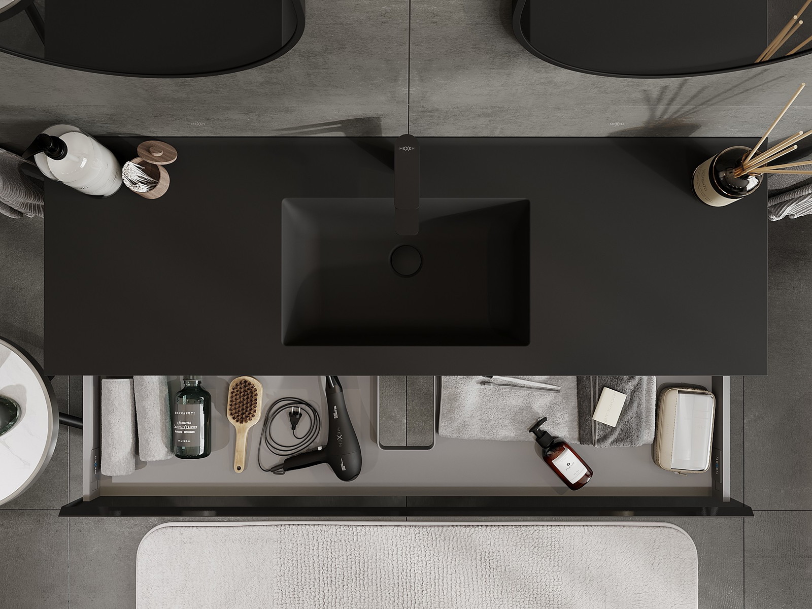 Mexen Orio fürdőszobaszekrény 140 cm mosdóval Otis, 1 fiók, fekete fényes/fekete matt - 91A10-14023-1-BF70-W18M71