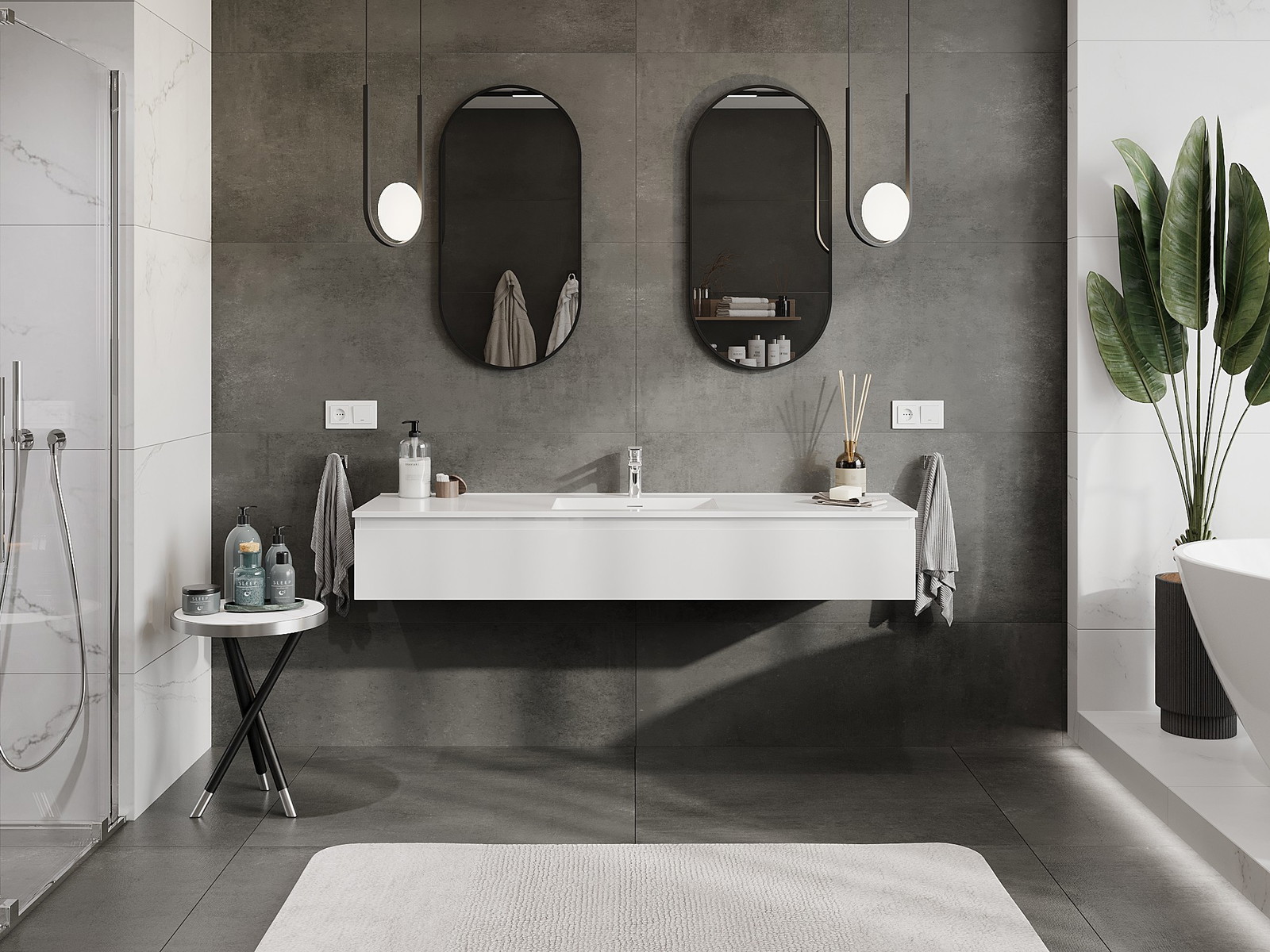 A moduláris fürdőszobabútorainkat különböző színkonfigurációkban lehet kombinálni, lehetővé téve a teljes személyre szabást. Kiválasztható mind az egyes elemek megjelenése, mind pedig funkciói, ami lehetővé teszi a bútorok személyes stílus- és használati preferenciákhoz való igazítását.
