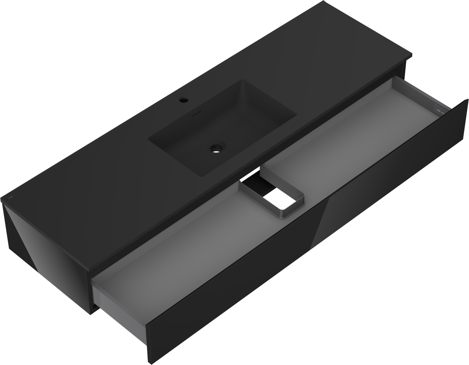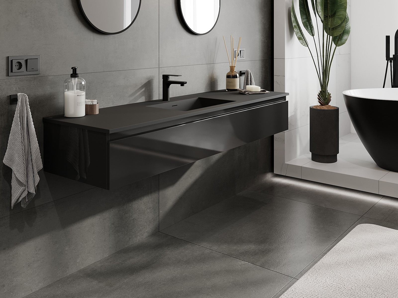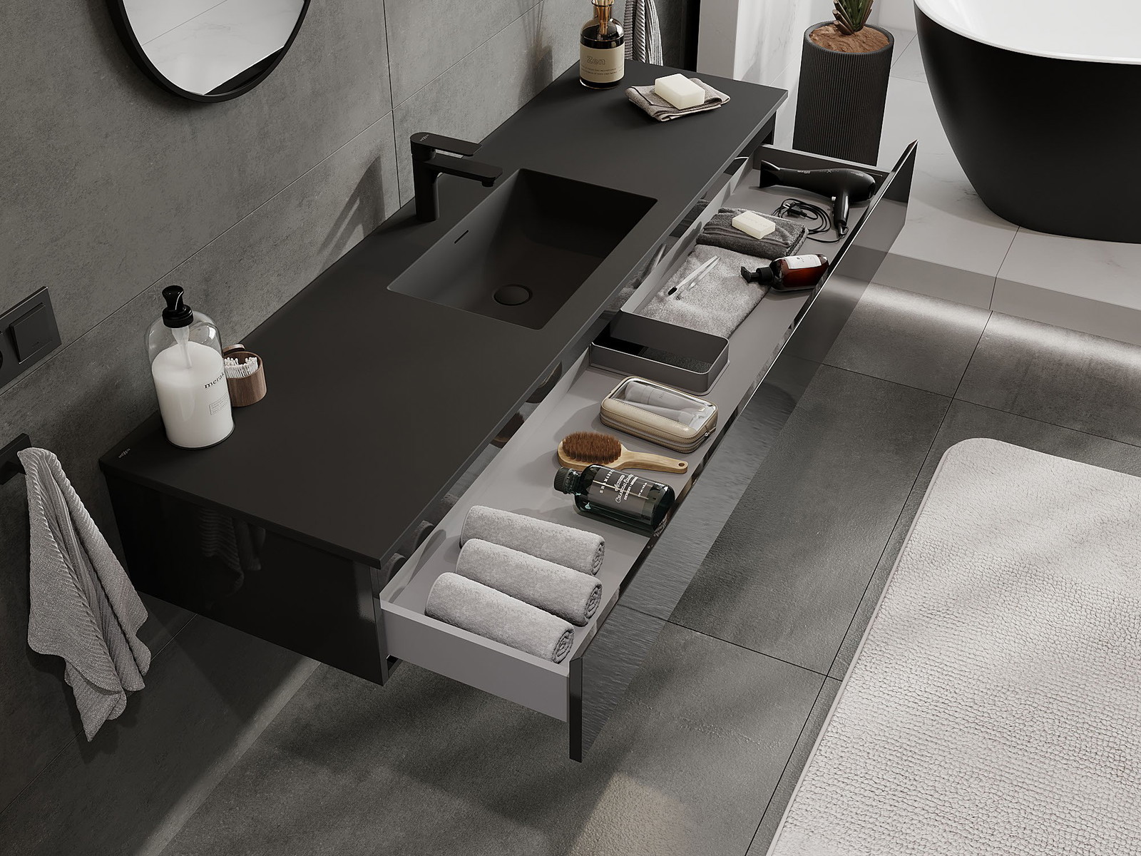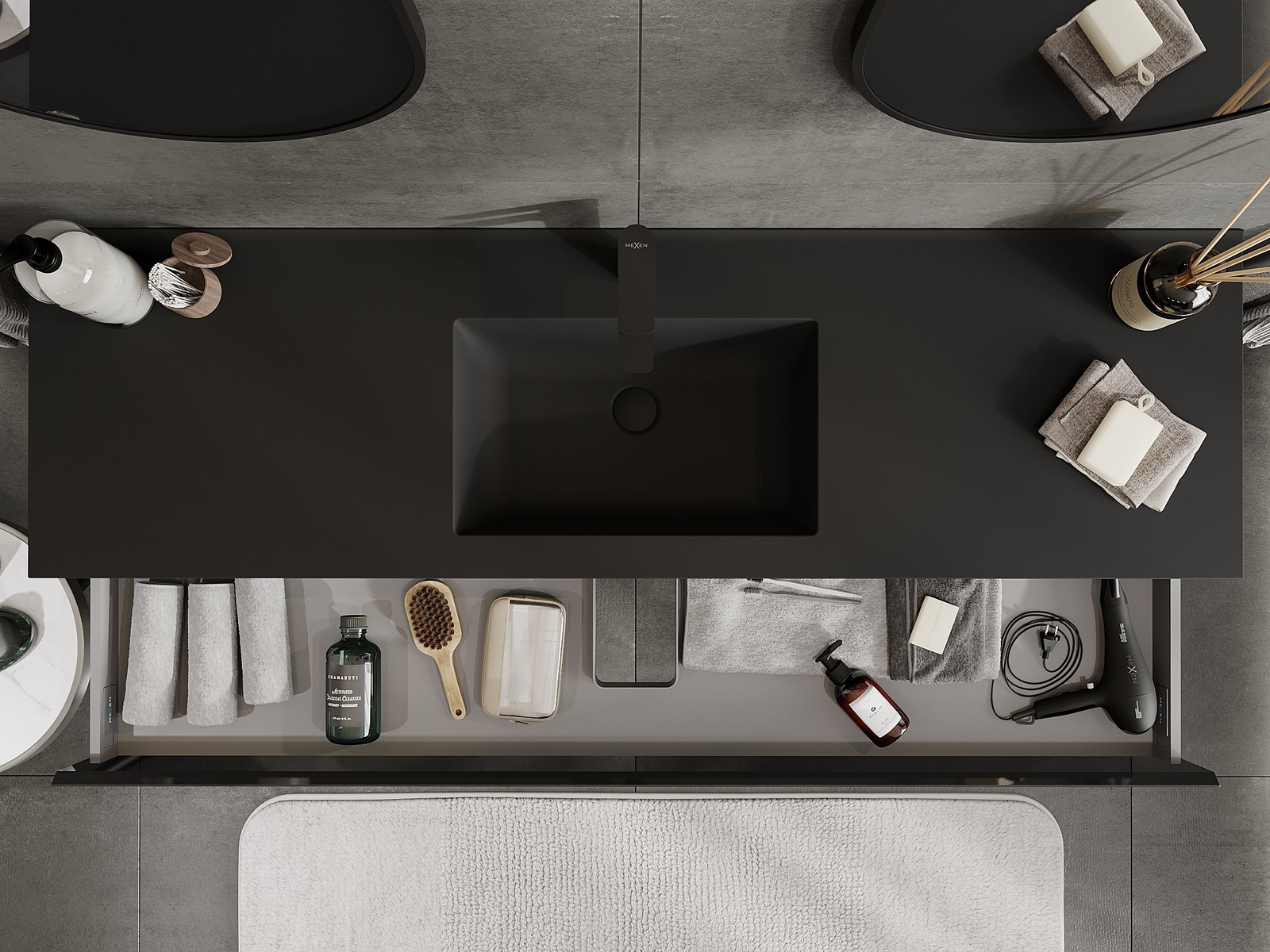 Mexen Orio fürdőszobai szekrény 160 cm mosdóval Otis, 1 fiók, fekete fényes/fekete matt - 91A10-16023-1-BF70-W18M71