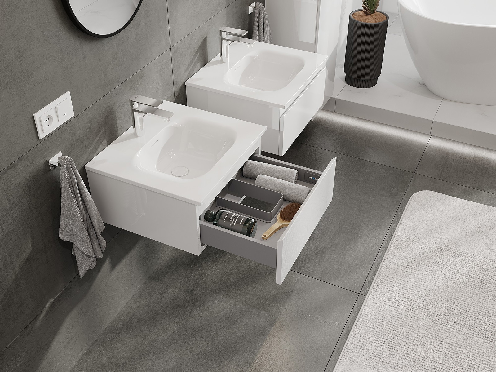 Mexen Orio 50 cm-es fürdőszobaszekrény Vela mosdóval, 1 fiók, fényes fehér - 91A10-05023-1-BF00-W23M00