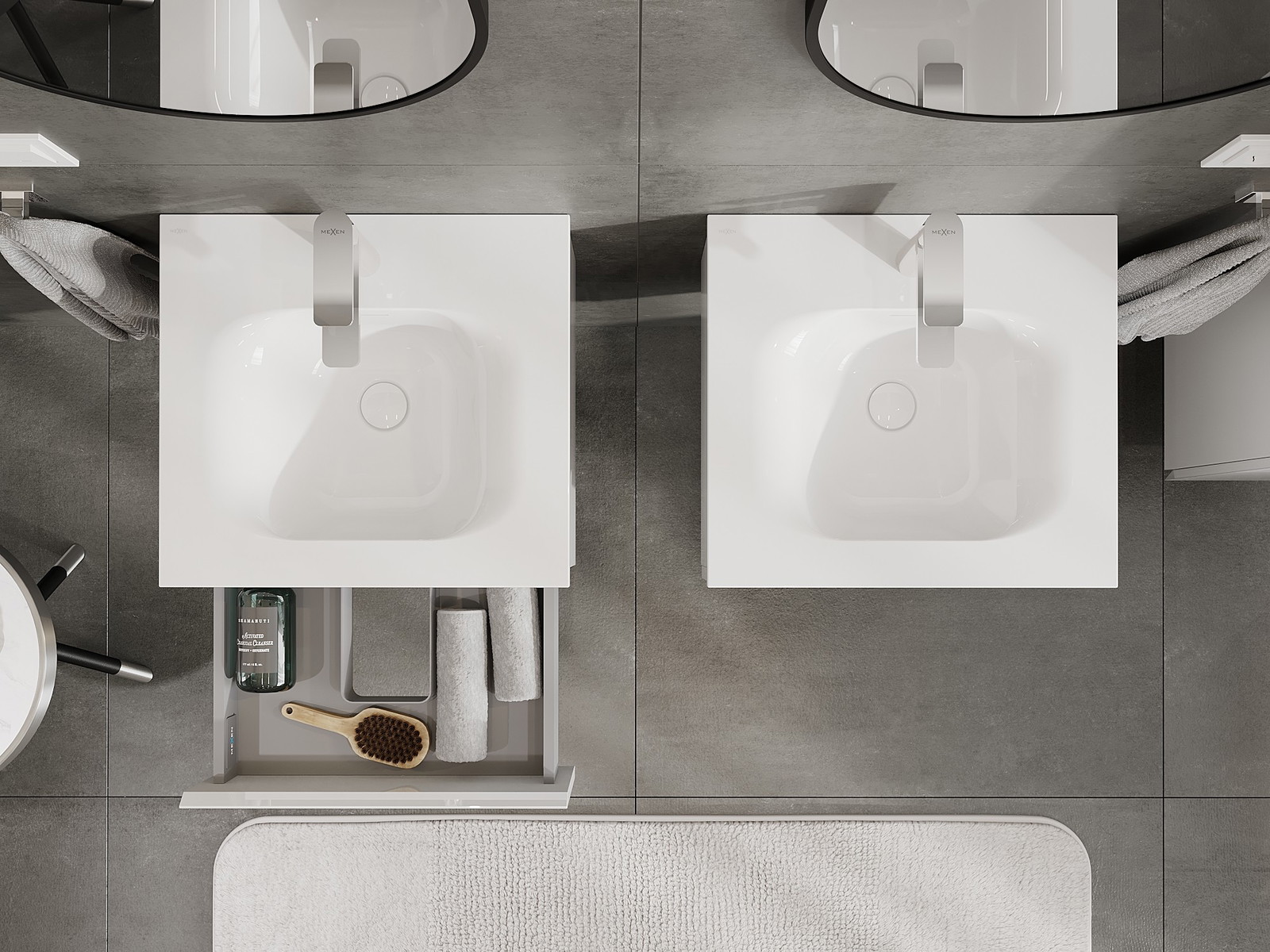 A fiókban lévő kivágás úgy van kialakítva, hogy befogadja a mosdó telepítéseknél szükséges szifont. Ennek köszönhetően a bútor teljesen funkcionálisan felszerelhető anélkül, hogy a fiók terének egy részét fel kellene áldozni a telepítés miatt.