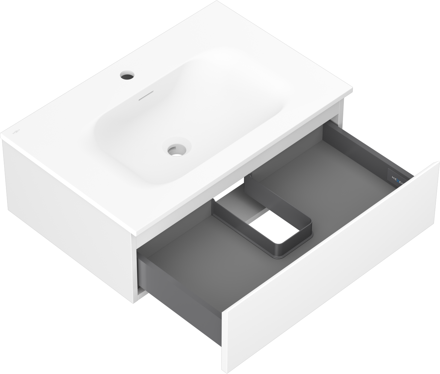 Mexen Orio 70 cm-es fürdőszobai szekrény Vela mosdóval, 1 fiók, fehér matt - 91A10-07023-1-BF01-W23M01
