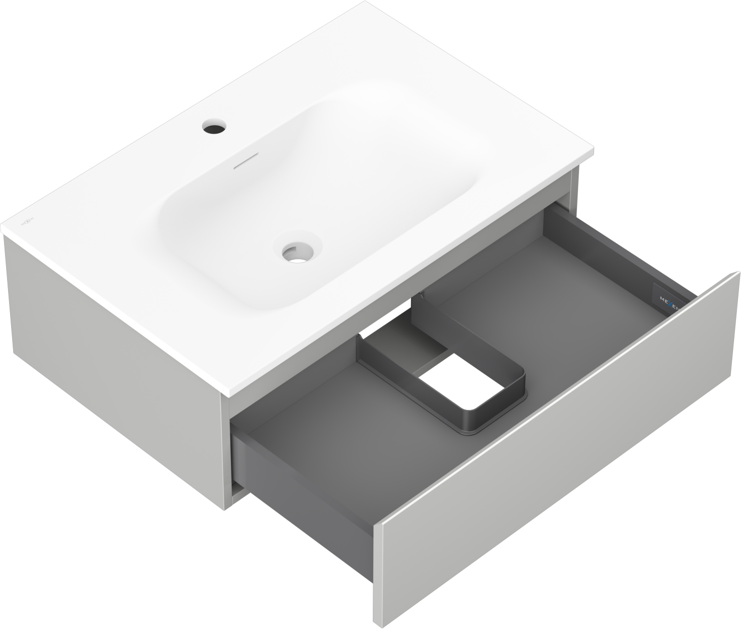 A fiókban lévő kivágás úgy van kialakítva, hogy befogadja a mosdó telepítéseknél szükséges szifont. Ennek köszönhetően a bútor teljesen funkcionálisan felszerelhető anélkül, hogy a fiók terének egy részét fel kellene áldozni a telepítés miatt.