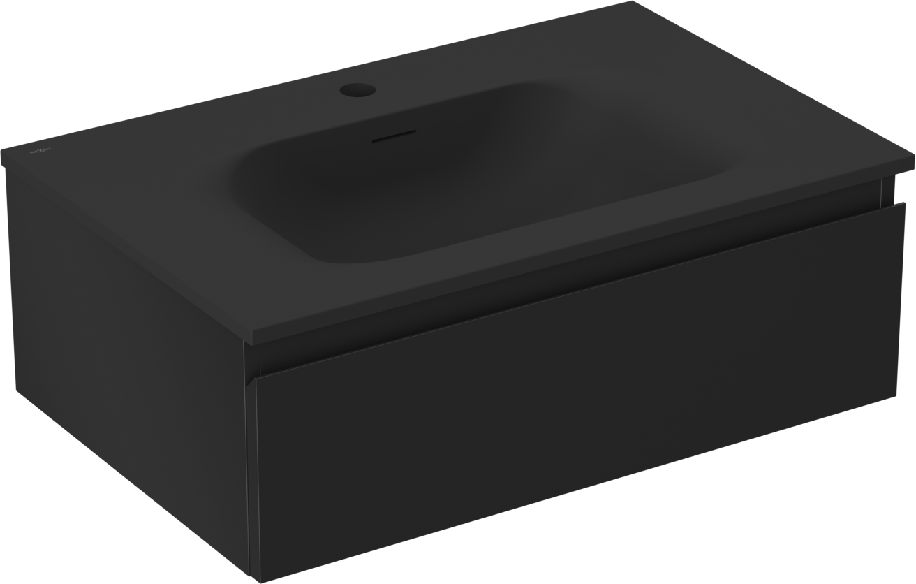 Mexen Orio 70 cm-es fürdőszobai szekrény Vela mosdóval, 1 fiók, fekete matt - 91A10-07023-1-BF71-W23M71