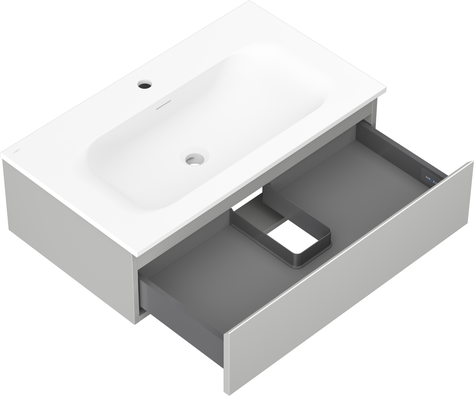 A fiókban lévő kivágás úgy van kialakítva, hogy befogadja a mosdó telepítéseknél szükséges szifont. Ennek köszönhetően a bútor teljesen funkcionálisan felszerelhető anélkül, hogy a fiók terének egy részét fel kellene áldozni a telepítés miatt.