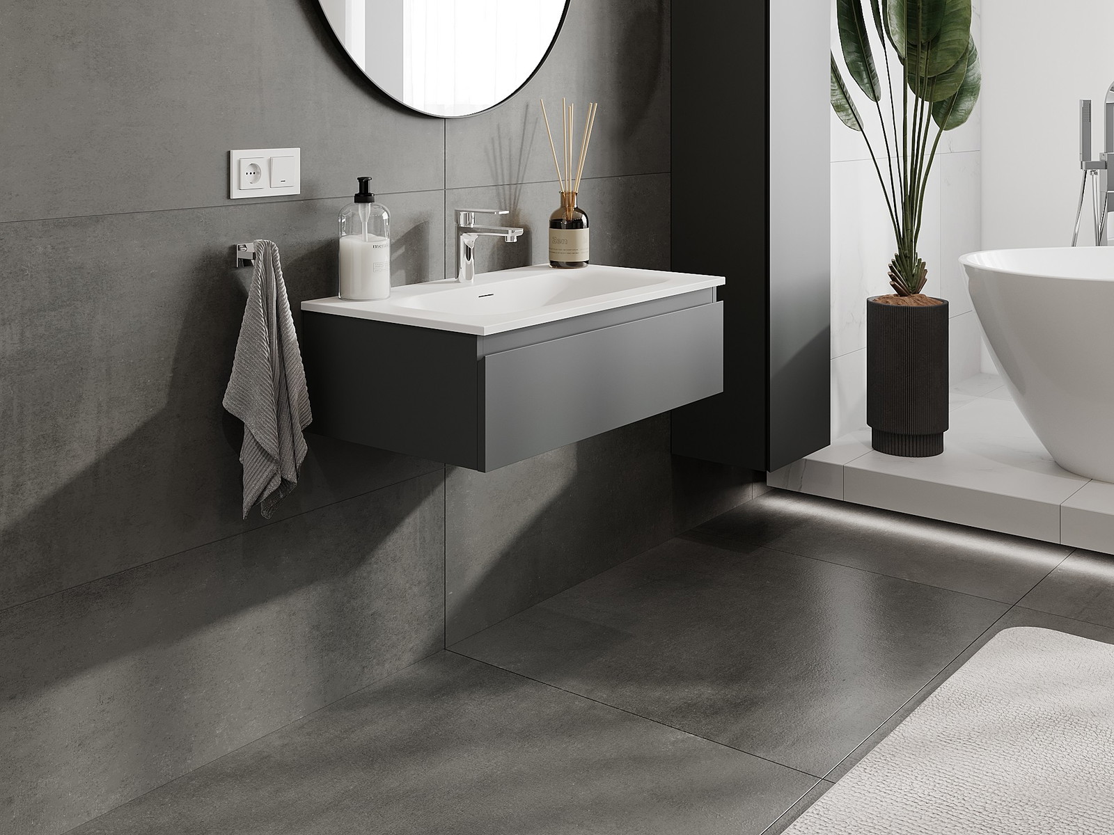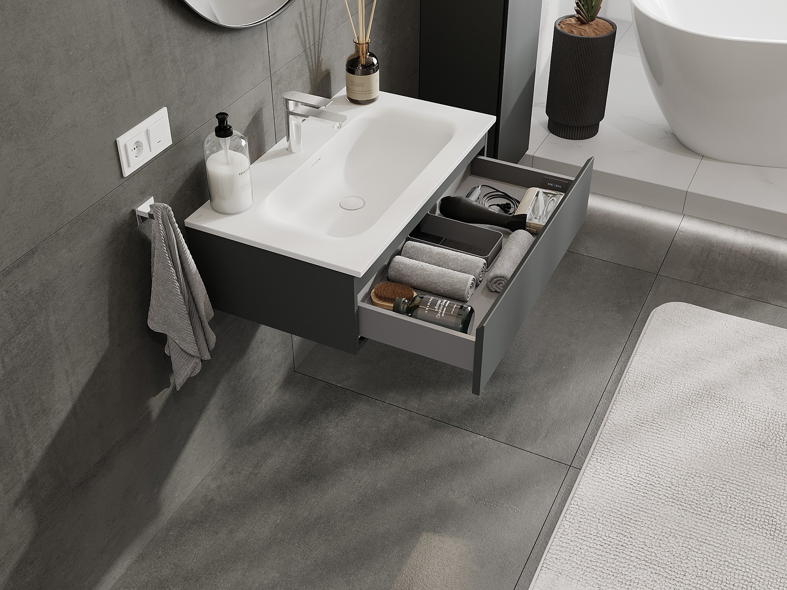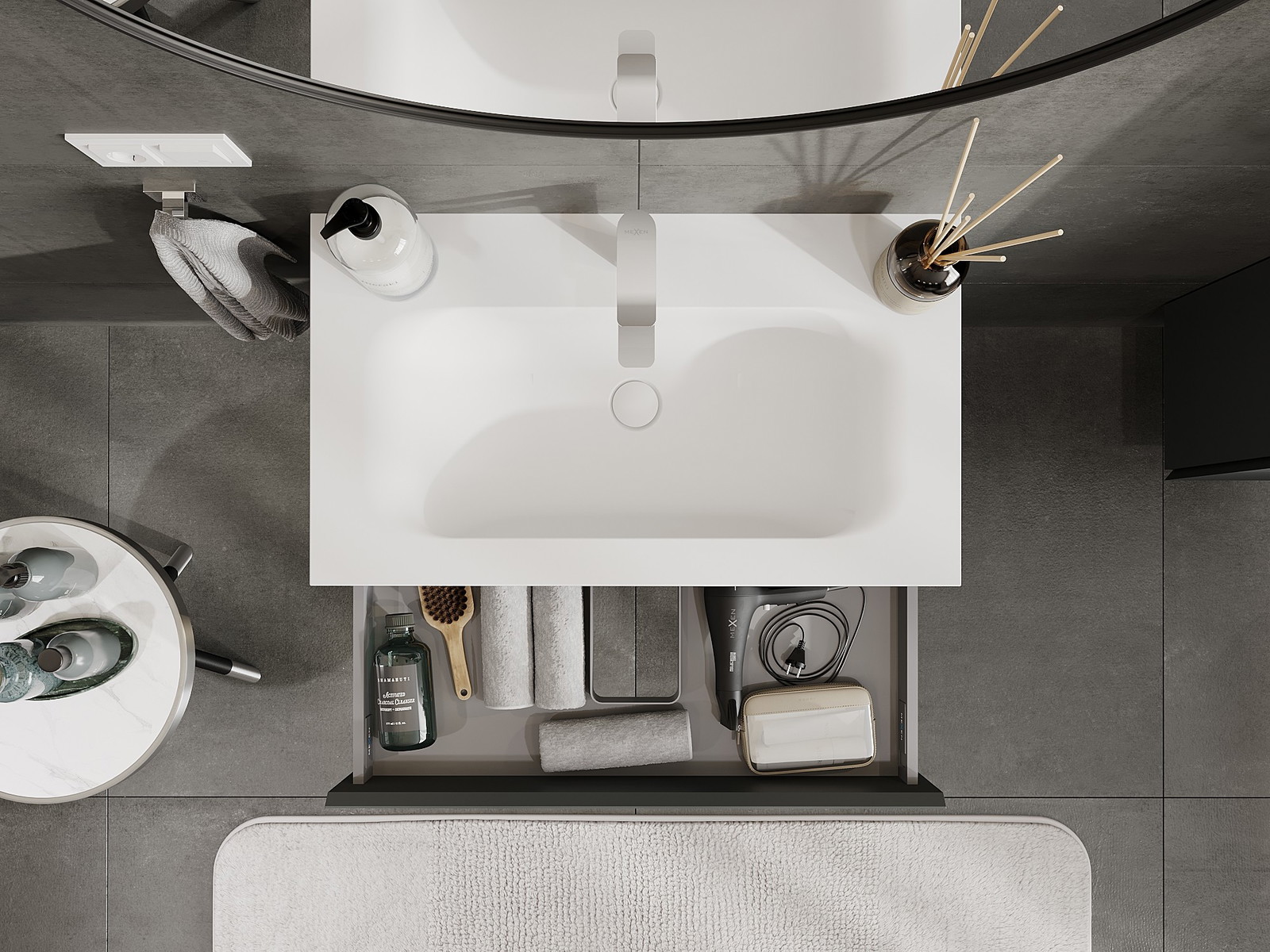 Mexen Orio fürdőszobaszekrény 80 cm, Vela mosdóval, 1 fiók, grafit matt/fehér matt - 91A10-08023-1-BF66-W23M01