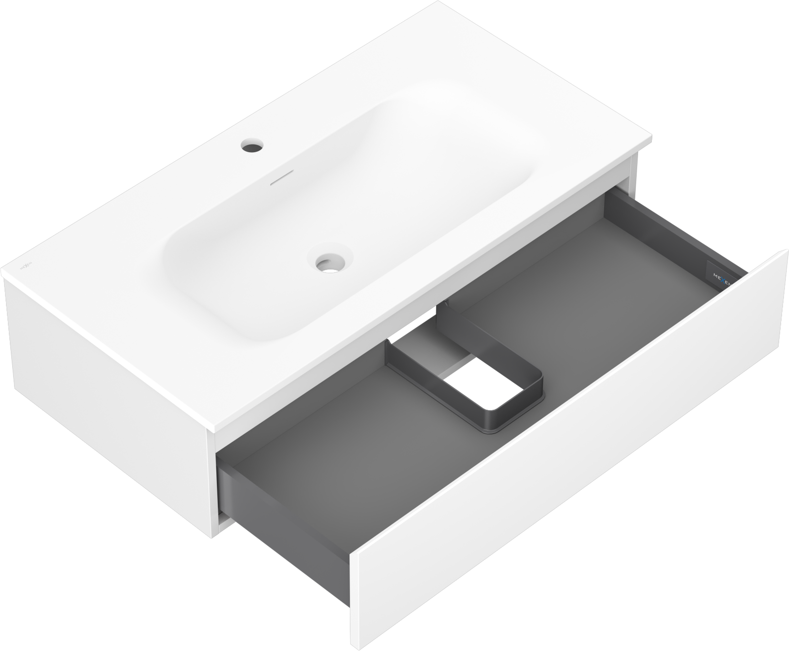 Mexen Orio fürdőszobai szekrény 90 cm Vela mosdóval, 1 fiók, fehér matt - 91A10-09023-1-BF01-W23M01
