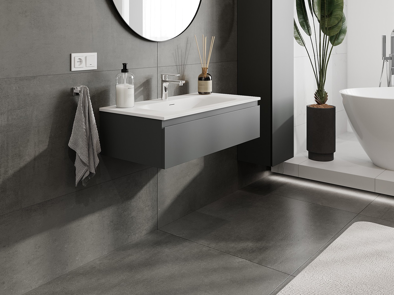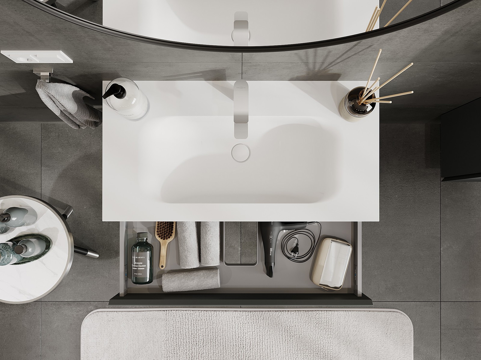 Mexen Orio 90 cm-es fürdőszobai szekrény Vela mosdóval, 1 fiók, grafit matt/fehér matt - 91A10-09023-1-BF66-W23M01