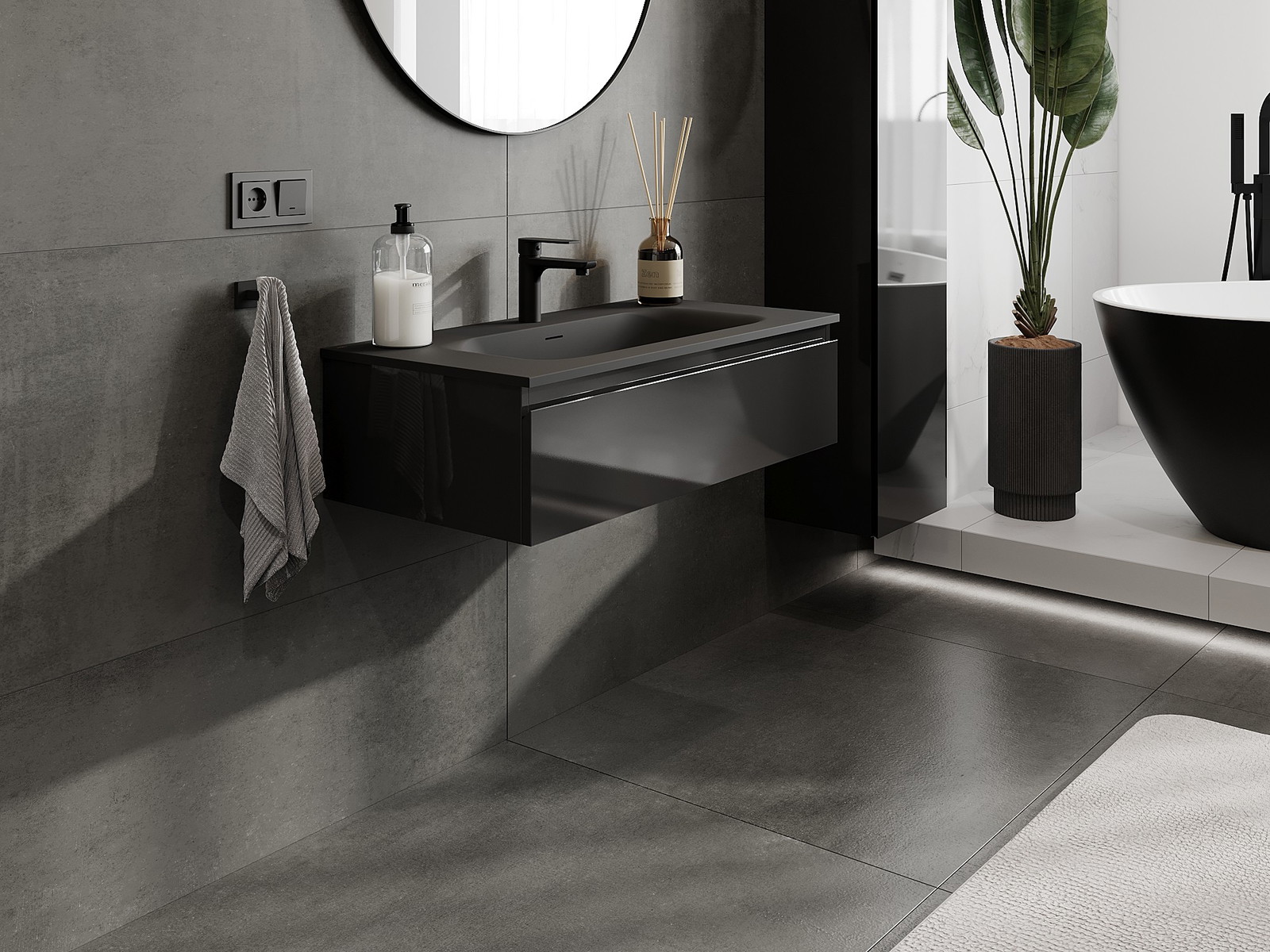 A mosdó színe: Fekete matt