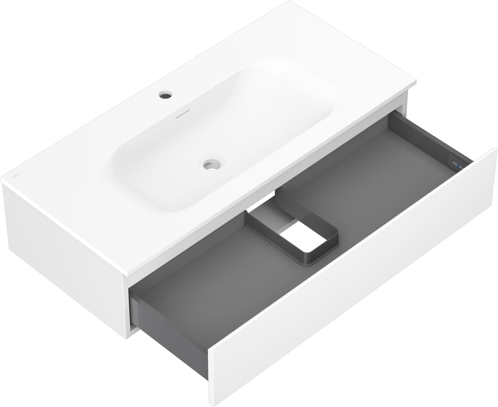 Mexen Orio 100 cm-es fürdőszobaszekrény Vela mosdóval, 1 fiók, fehér matt - 91A10-10023-1-BF01-W23M01