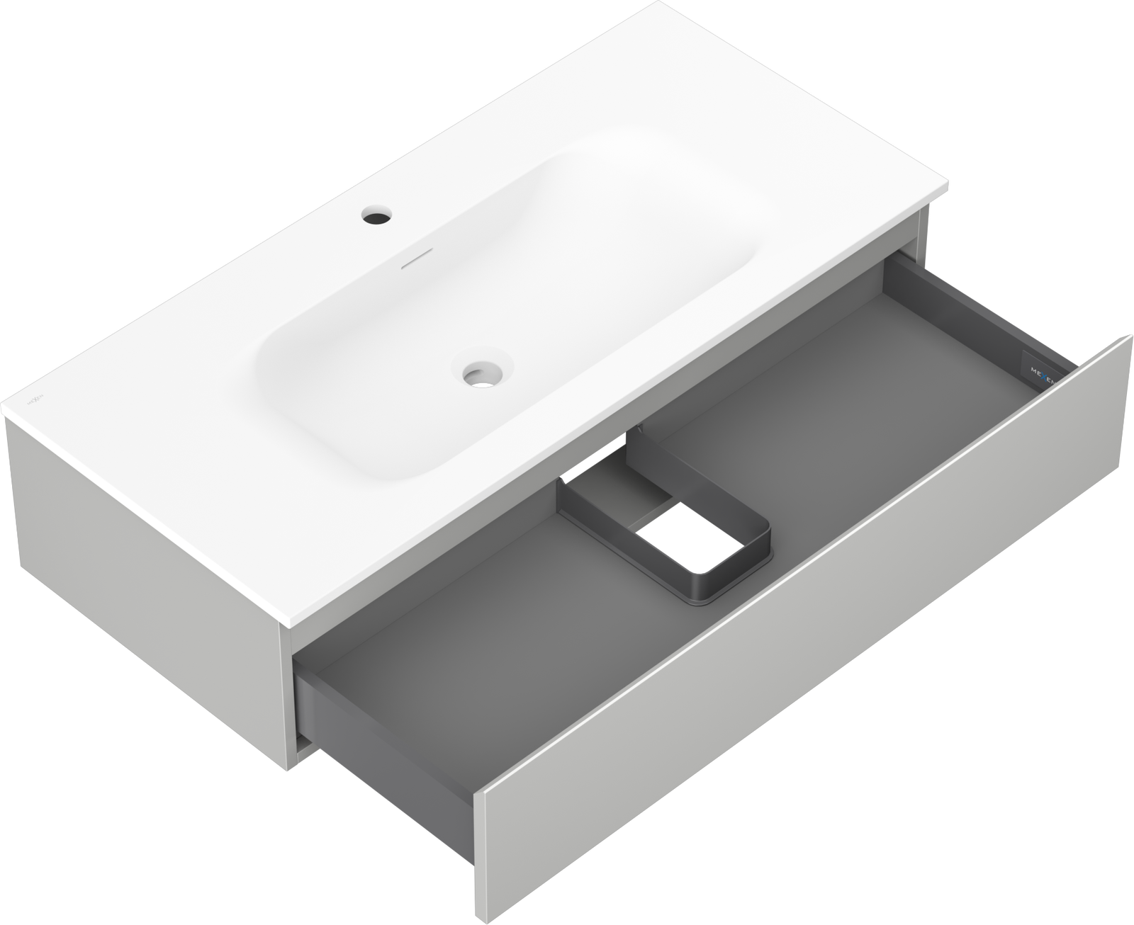A fiókban lévő kivágás úgy van kialakítva, hogy befogadja a mosdó telepítéseknél szükséges szifont. Ennek köszönhetően a bútor teljesen funkcionálisan felszerelhető anélkül, hogy a fiók terének egy részét fel kellene áldozni a telepítés miatt.