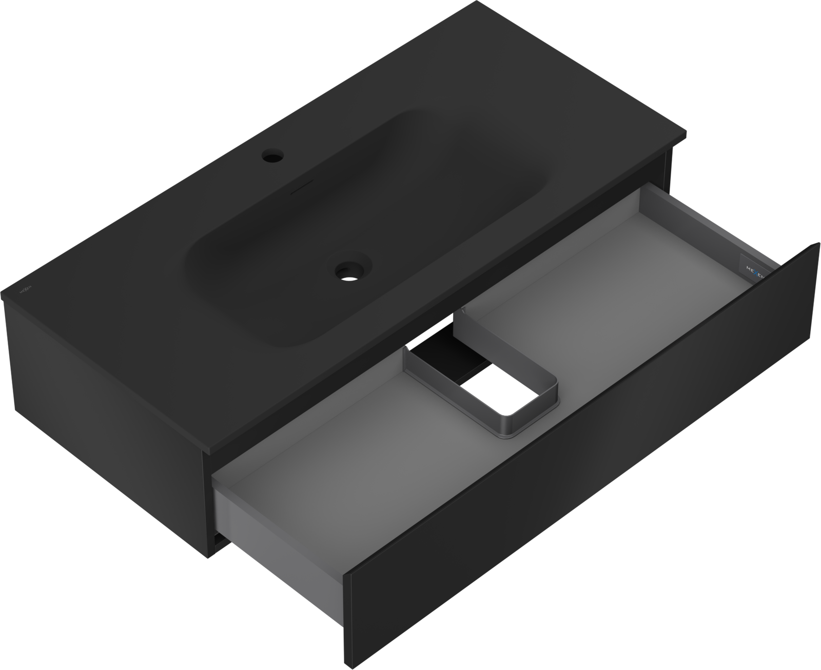 Mexen Orio fürdőszobai szekrény 100 cm-es Vela mosdóval, 1 fiók, fekete matt - 91A10-10023-1-BF71-W23M71