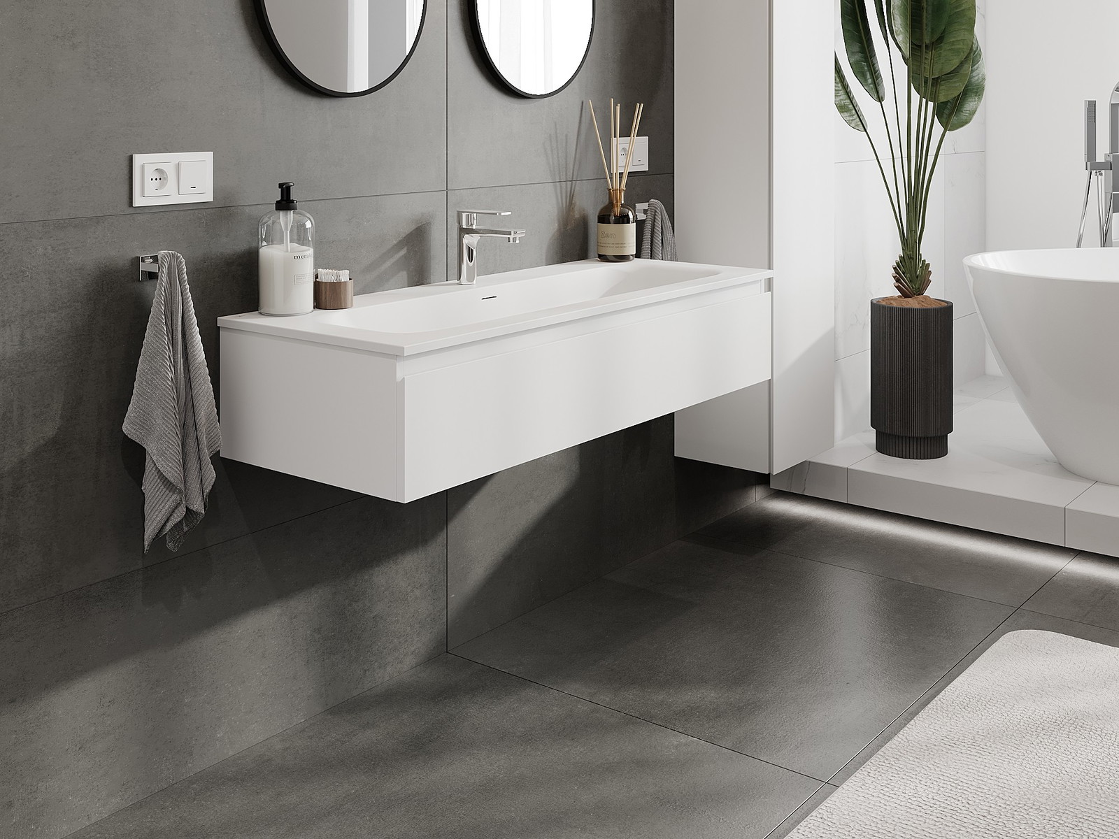 A moduláris fürdőszobabútorainkat különböző színkonfigurációkban lehet kombinálni, lehetővé téve a teljes személyre szabást. Kiválasztható mind az egyes elemek megjelenése, mind pedig funkciói, ami lehetővé teszi a bútorok személyes stílus- és használati preferenciákhoz való igazítását.